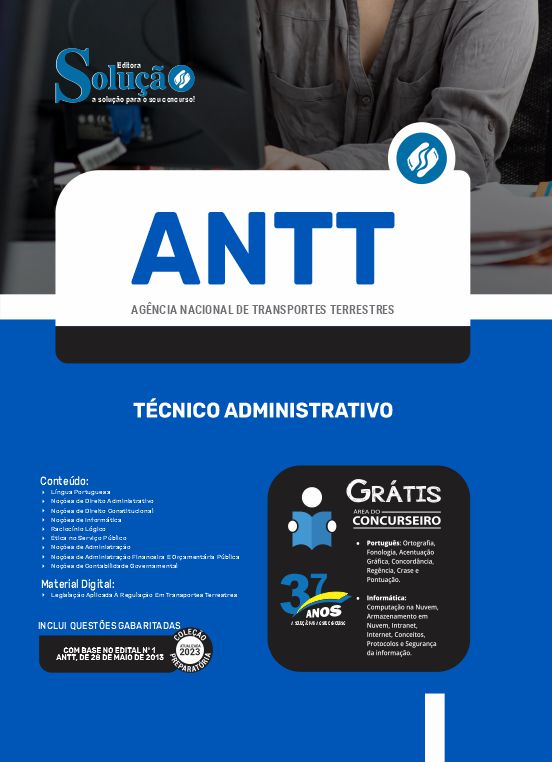 A Apostila ANTT 2023 - Técnico Administrativo foi organizada para proporcionar um melhor rendimento na sua preparação, abordando cada conteúdo de forma objetiva e direcionada. Estude para o Concurso da ANTT - Agência Nacional de Transportes Terrestres com um material de acordo com o último Edital oficial para o cargo de Técnico Administrativo.