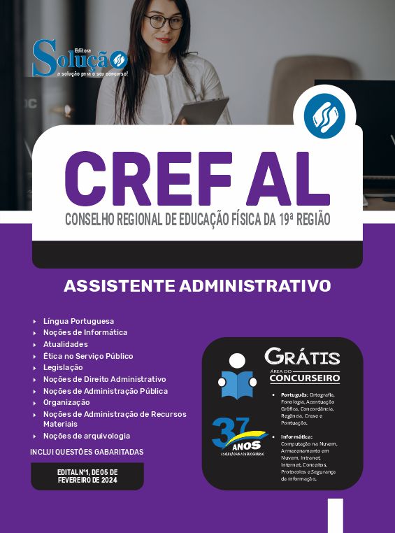 A Apostila CREF-AL 2024 - Assistente Administrativo foi organizada para proporcionar um melhor rendimento na sua preparação, abordando cada conteúdo de forma objetiva e direcionada. Estude para o Concurso da CREF-AL - Conselho Regional de Educação Física da 19ª Região 2024 com um material de acordo com o Edital oficial para o cargo de Assistente Administrativo.