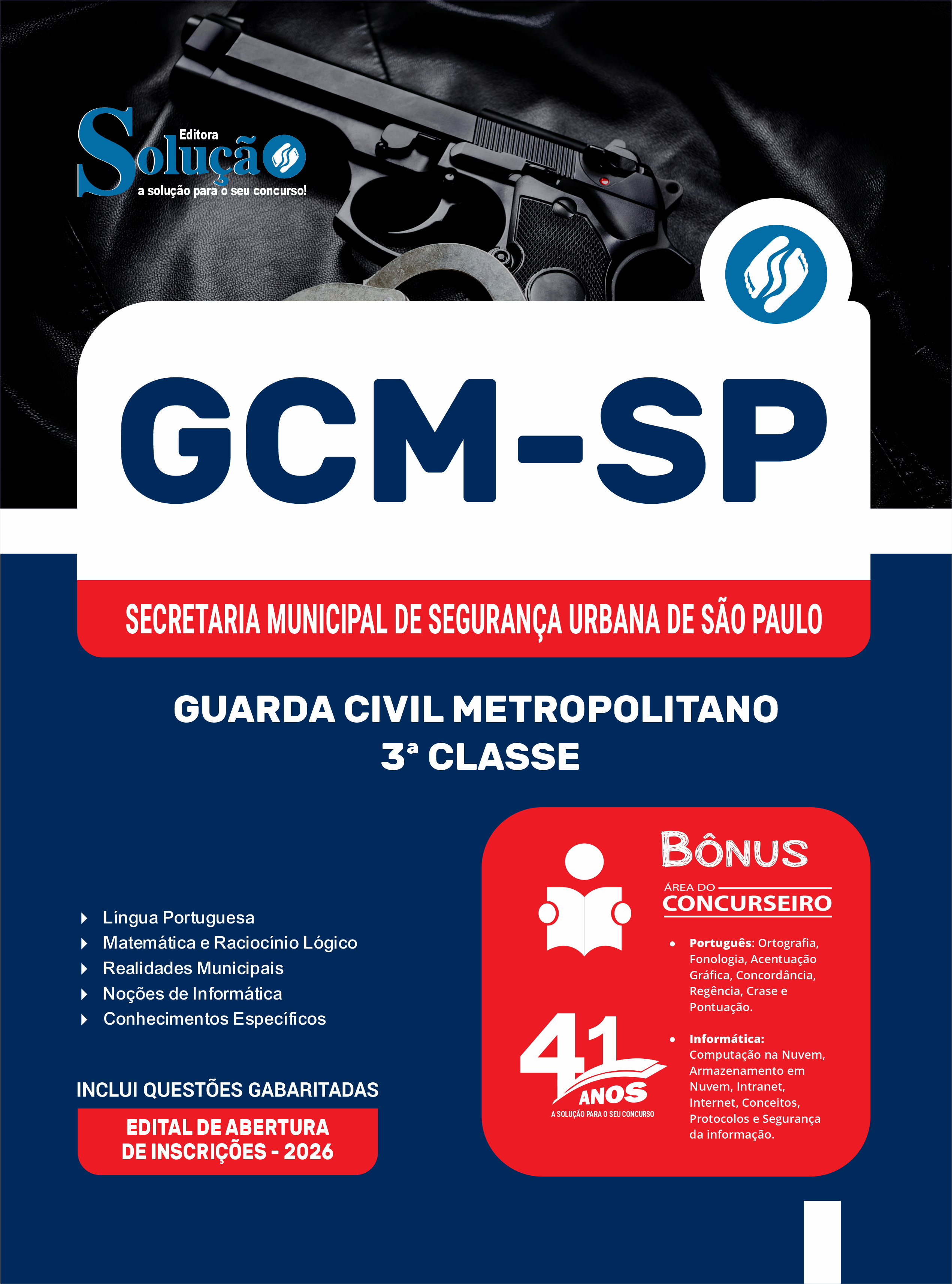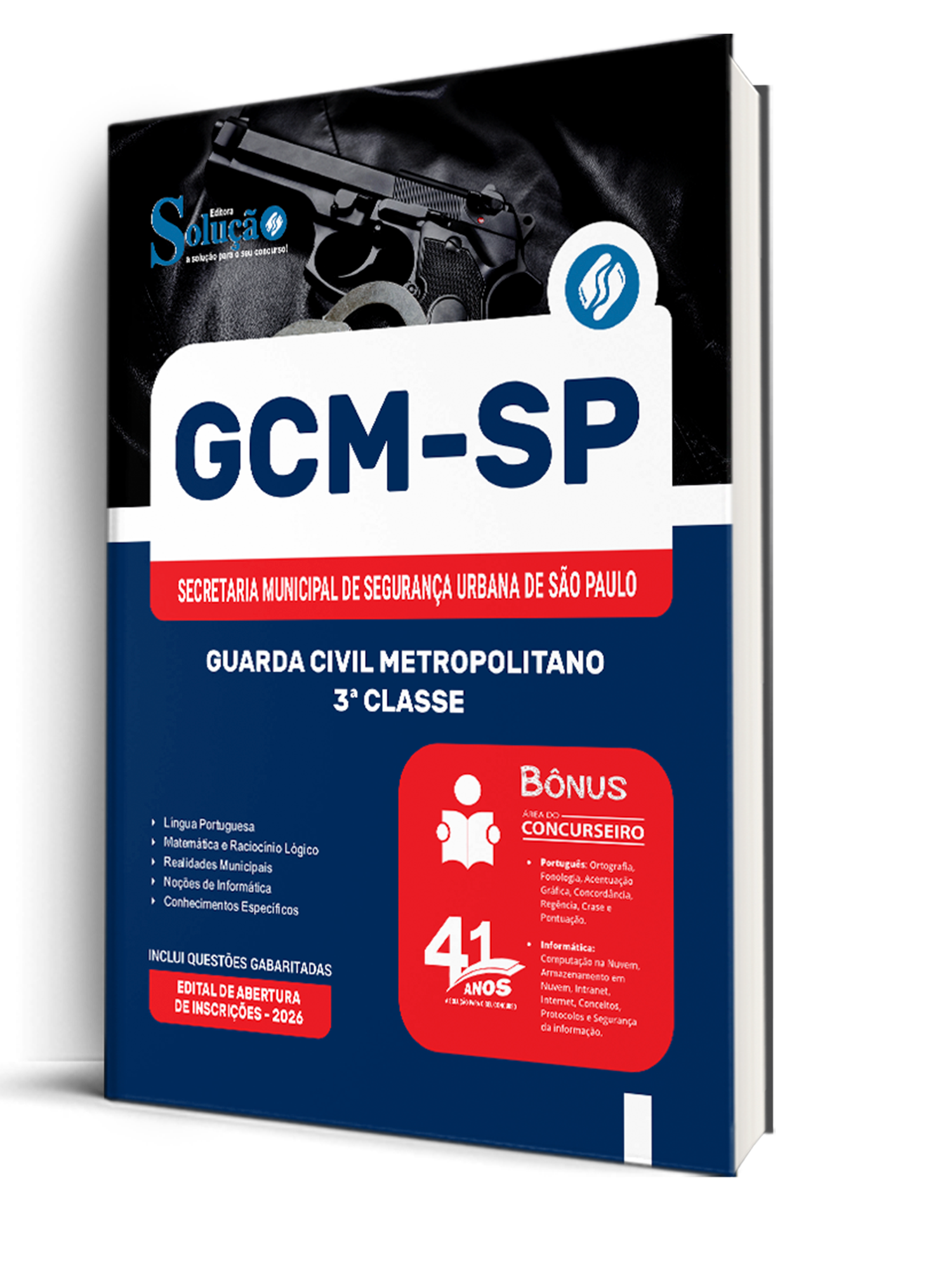 A Apostila Guarda Civil Municipal de São Paulo 2026 - Guarda Civil Metropolitano - 3ª Classe foi organizada para proporcionar um melhor rendimento na sua preparação, abordando cada conteúdo de forma objetiva e direcionada. Estude para o Concurso da Guarda Civil Municipal de São Paulo 2026 com um material de acordo com o Edital oficial para o cargo de Guarda Civil Metropolitano - 3ª Classe.