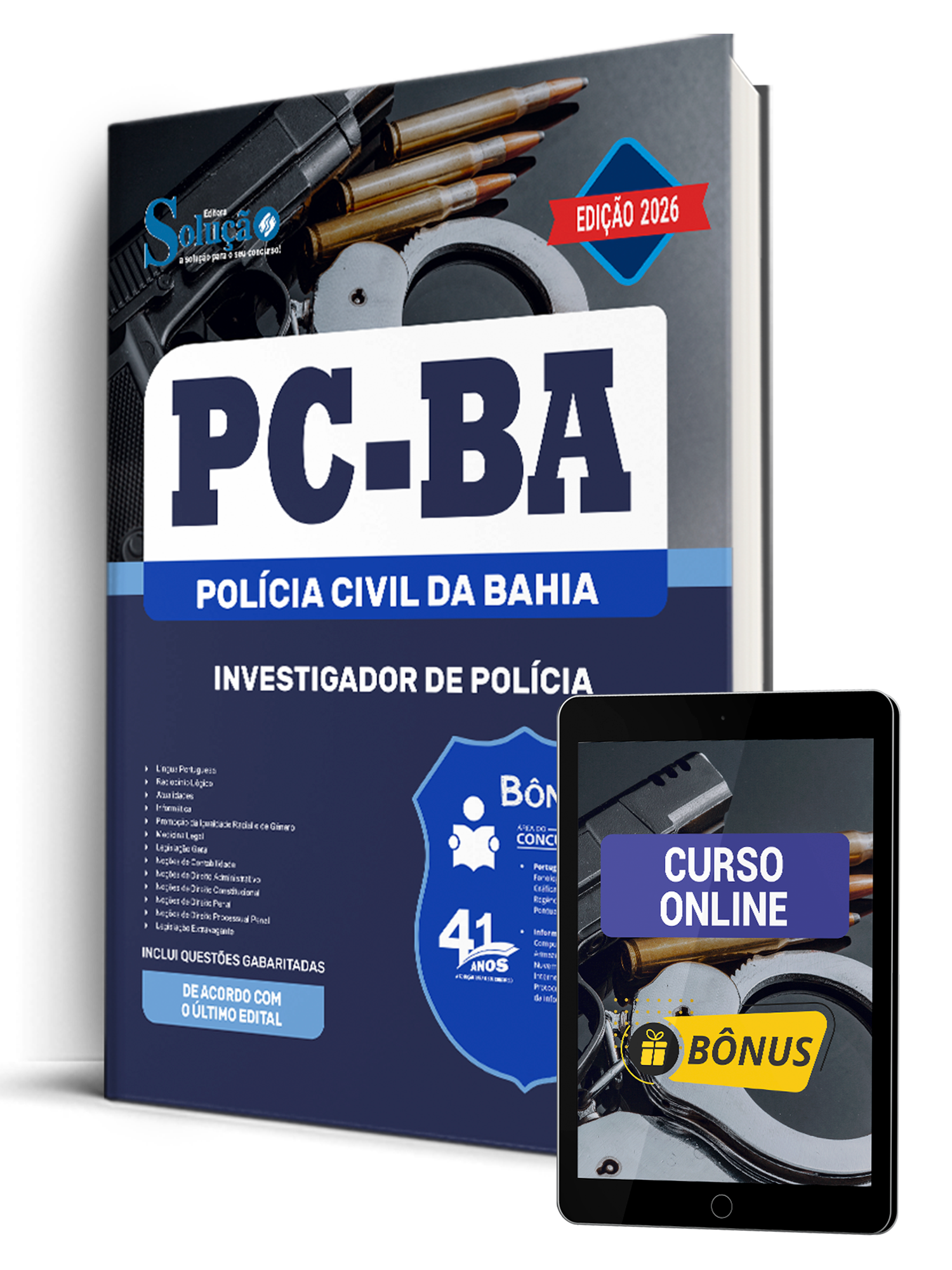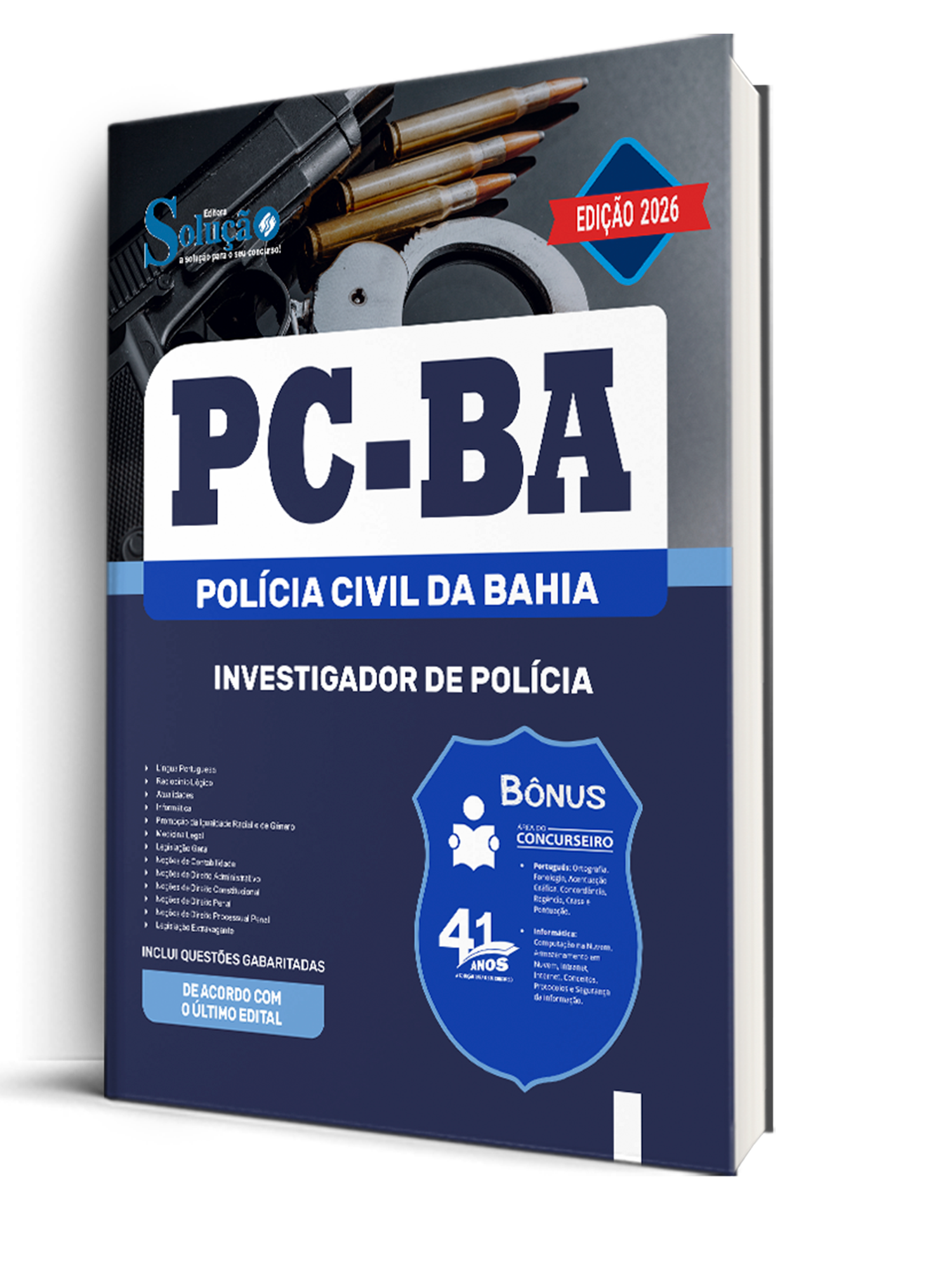 A Apostila Polícia Civil da Bahia 2026 - Investigador de Polícia foi organizada para proporcionar um melhor rendimento na sua preparação, abordando cada conteúdo de forma objetiva e direcionada. Estude para o Concurso da Polícia Civil da Bahia 2026 com um material de acordo com o Edital oficial para o cargo de Investigador de Polícia.