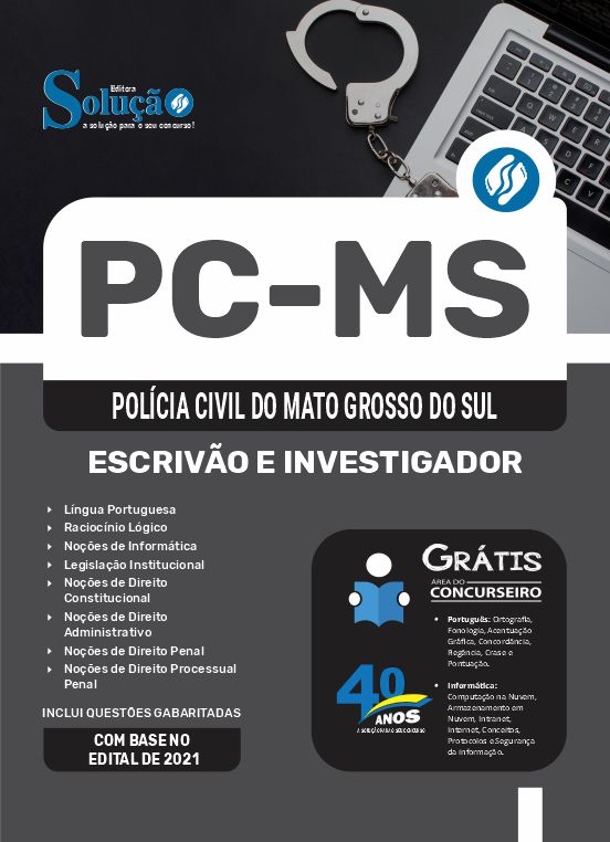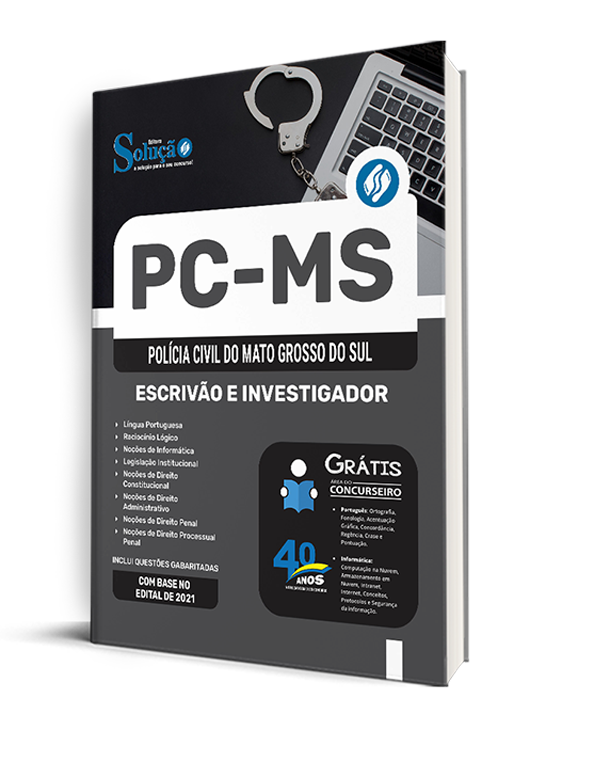 A Apostila PC-MS 2024 - Escrivão e Investigador foi organizada para proporcionar um melhor rendimento na sua preparação, abordando cada conteúdo de forma objetiva e direcionada. Estude para o Concurso da PC-MS (Polícia Civil do Estado de Mato Grosso do Sul) com um material de acordo com o último Edital oficial para os cargos de Escrivão e Investigador.