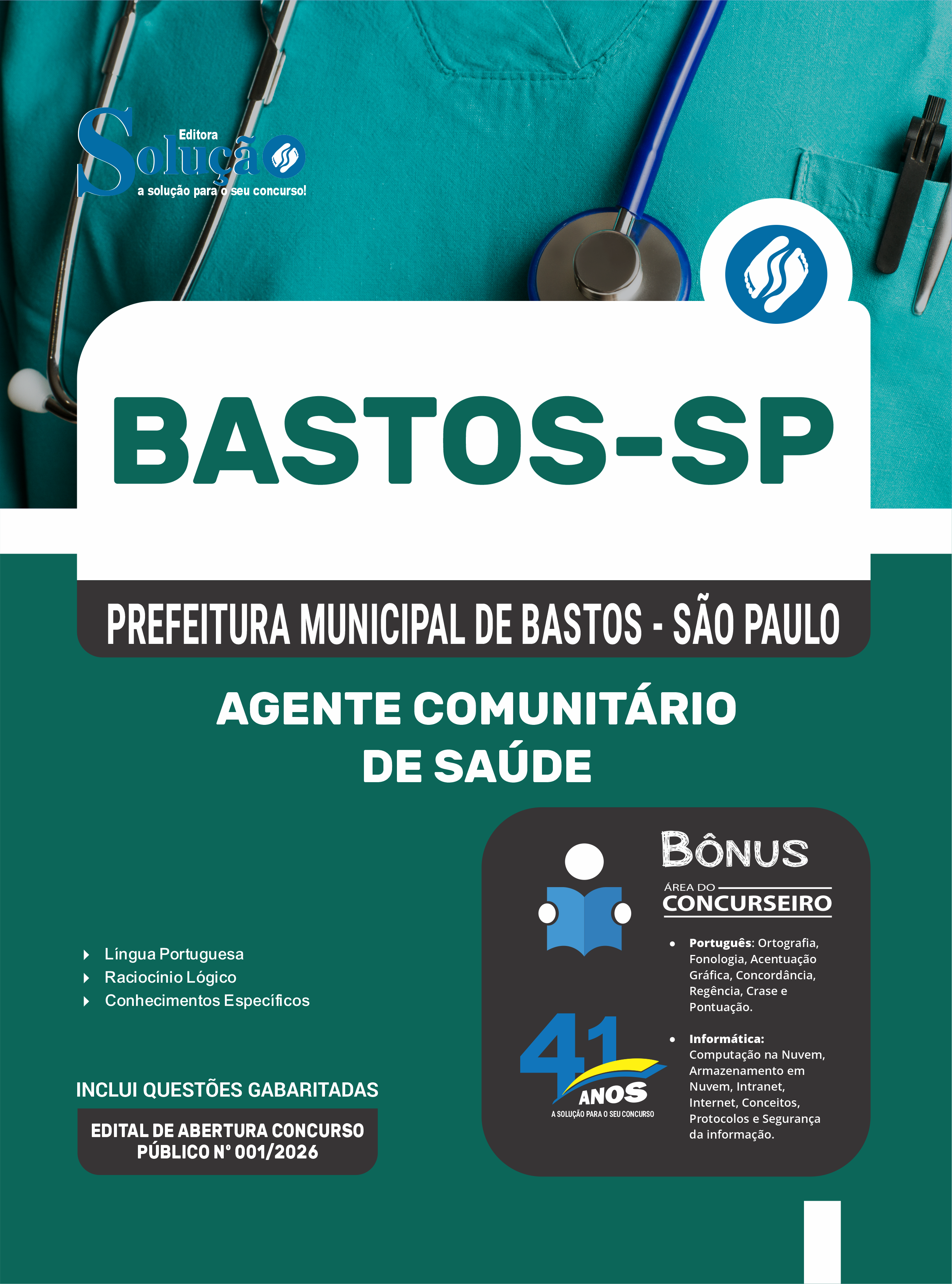 A Apostila Prefeitura Municipal de Bastos - SP 2026 - Agente Comunitário de Saúde foi organizada para proporcionar um melhor rendimento na sua preparação, abordando cada conteúdo de forma objetiva e direcionada. Estude para o Concurso da Prefeitura Municipal de Bastos - SP 2026 com um material de acordo com o Edital oficial para o cargo de Agente Comunitário de Saúde.