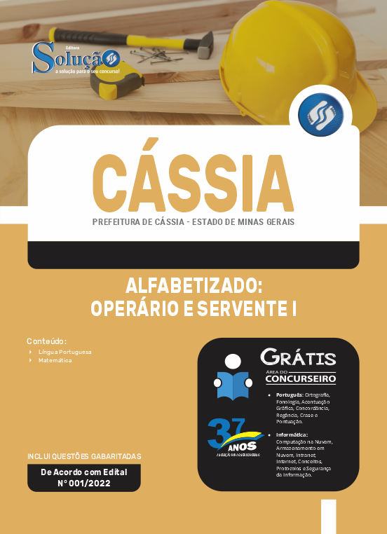 Apostila Prefeitura de Cássia - MG - Alfabetizado: Operário e Servente I
