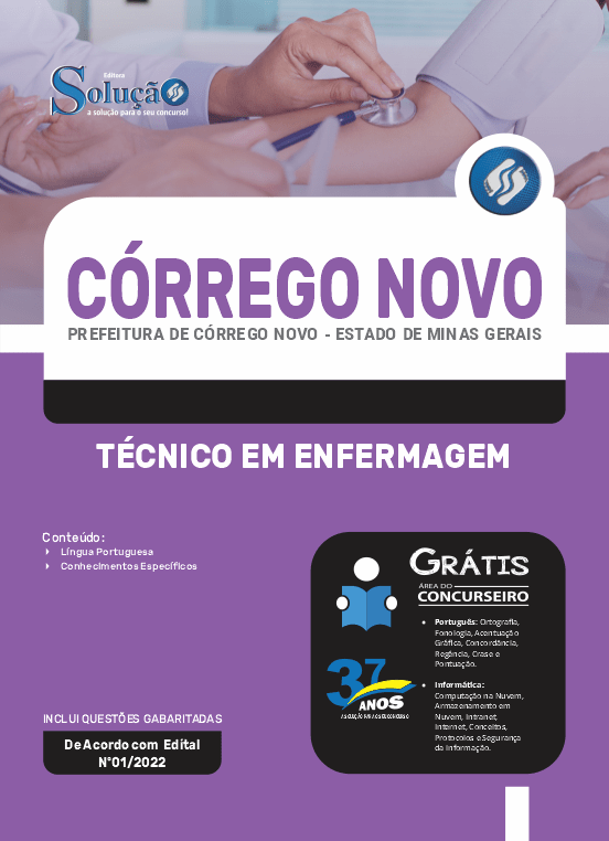 A Apostila Prefeitura de Córrego Novo - MG - Técnico em Enfermagem foi organizada para proporcionar um melhor rendimento na sua preparação, abordando cada conteúdo de forma objetiva e direcionada. Estude para o Concurso da Prefeitura de Córrego Novo - MG 2022 com um material de acordo com o Edital oficial para o cargo de Técnico em Enfermagem.