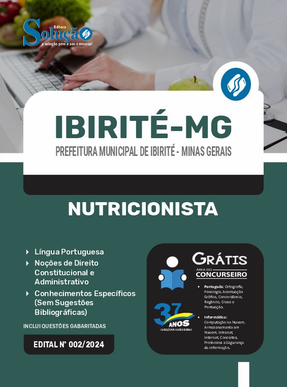 A Apostila Prefeitura de Ibirité - MG 2024 - Nutricionista foi organizada para proporcionar um melhor rendimento na sua preparação, abordando cada conteúdo de forma objetiva e direcionada. Estude para o Concurso da Prefeitura de Ibirité - MG 2024 com um material de acordo com o Edital oficial para o cargo de Nutricionista.