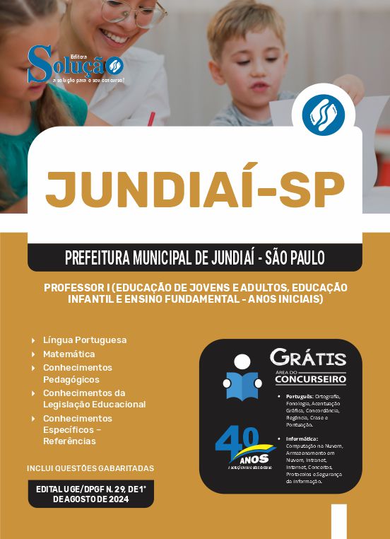 A Apostila Prefeitura de Jundiaí - SP 2024 - Professor I (Educação de Jovens e Adultos, Educação Infantil e Ensino Fundamental - Anos Iniciais) foi organizada para proporcionar um melhor rendimento na sua preparação, abordando cada conteúdo de forma objetiva e direcionada. Estude para o Concurso da Prefeitura de Jundiaí - SP 2024 com um material de acordo com o Edital oficial para o cargo de Professor I (Educação de Jovens e Adultos, Educação Infantil e Ensino Fundamental - Anos Iniciais).