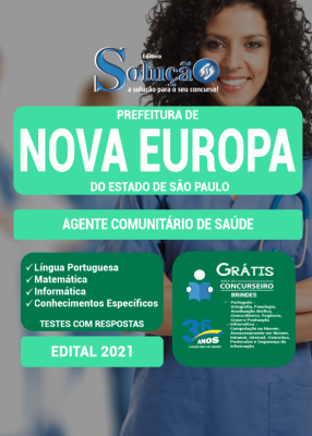 A Apostila Prefeitura de Nova Europa - SP - Agente Comunitário de Saúdefoi organizada para proporcionar um melhor rendimento na sua preparação, abordando cada conteúdo de forma clara. Estude para o Concurso da Prefeitura de Nova Europa - SP 2022 com um material de acordo com o Edital oficial para o cargo de Agente Comunitário de Saúde.