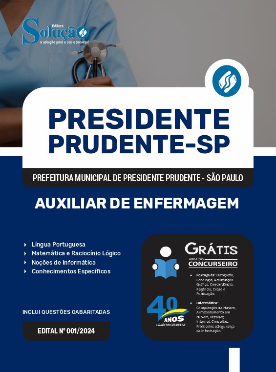 A Apostila Prefeitura de Presidente Prudente - SP 2024 - Auxiliar de Enfermagem foi organizada para proporcionar um melhor rendimento na sua preparação, abordando cada conteúdo de forma objetiva e direcionada. Estude para o Concurso da Prefeitura de Presidente Prudente - SP 2024 com um material de acordo com o Edital oficial para o cargo de Auxiliar de Enfermagem.