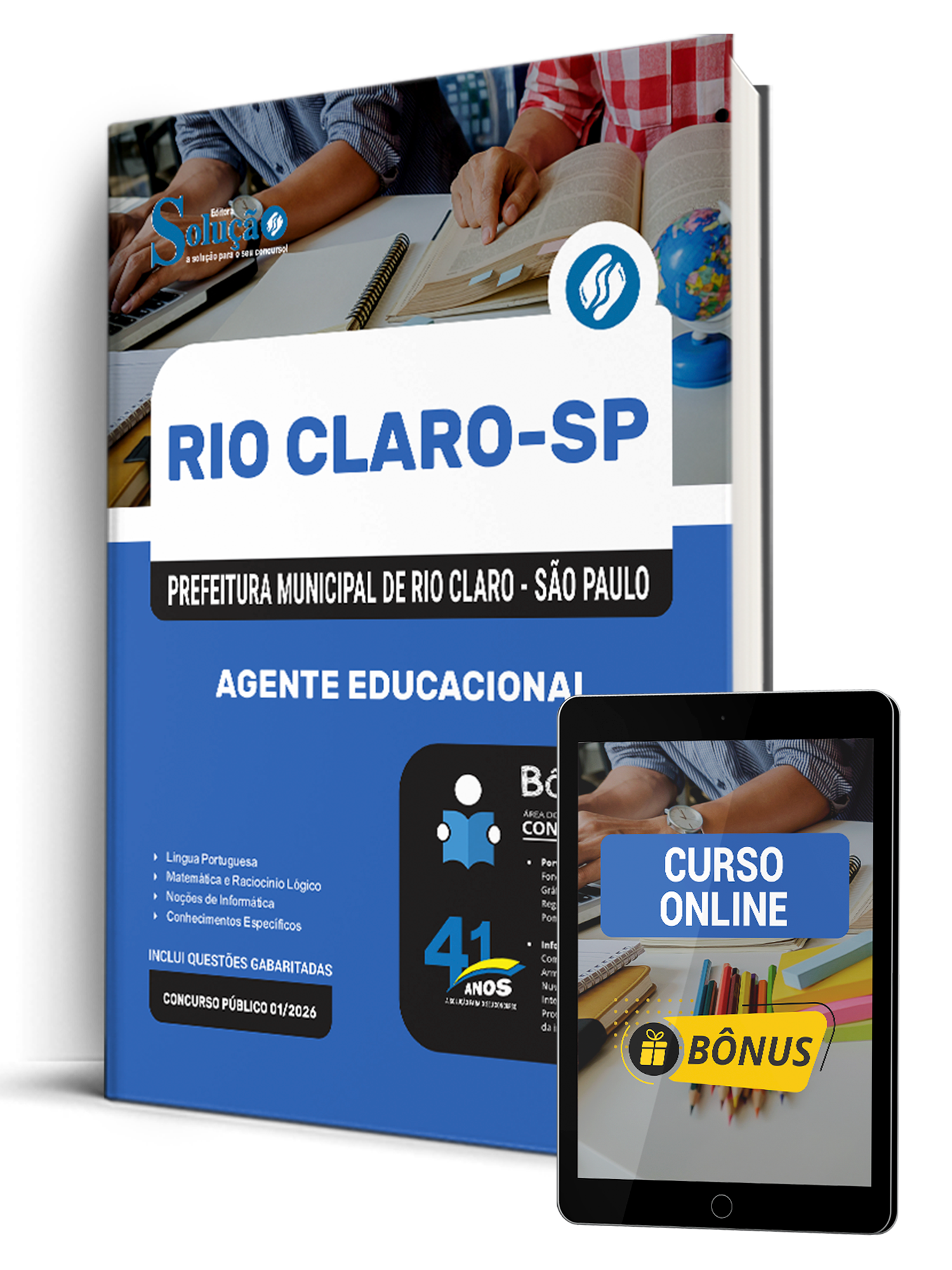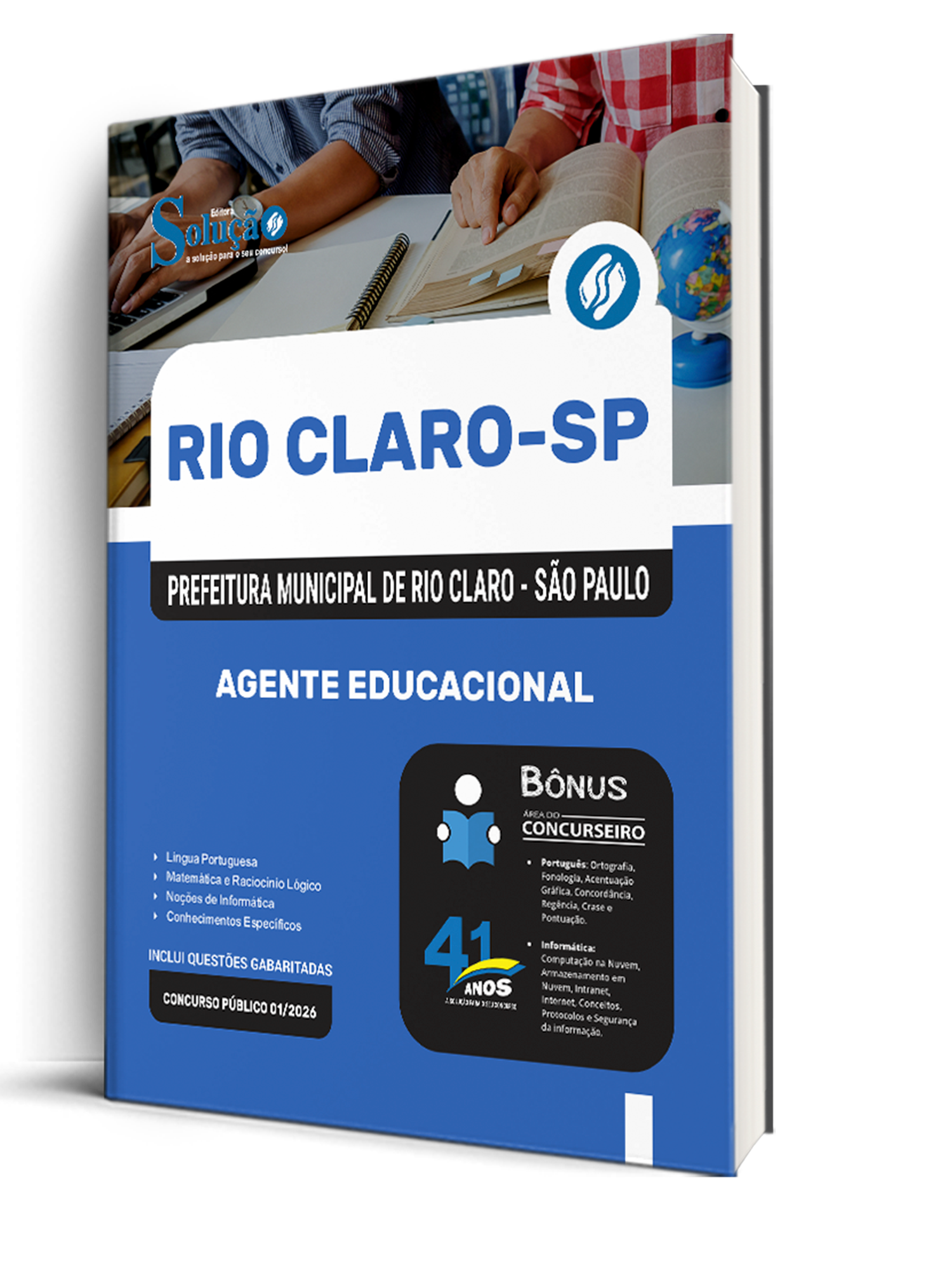 A Apostila Prefeitura Municipal de Rio Claro - SP 2026 - Agente Educacional foi organizada para proporcionar um melhor rendimento na sua preparação, abordando cada conteúdo de forma objetiva e direcionada. Estude para o Concurso da Prefeitura Municipal de Rio Claro - SP 2026 com um material de acordo com o Edital oficial para o cargo de Agente Educacional.