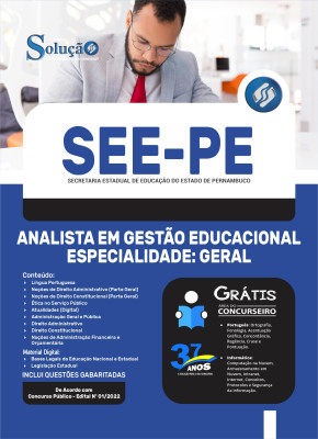A Apostila SEE-PE - Analista em Gestão Educacional - Especialidade: Geral foi organizada para proporcionar um melhor rendimento na sua preparação, abordando cada conteúdo de forma objetiva e direcionada. Estude para o Concurso da SEE-PE - Secretaria Estadual de Educação do Estado de Pernambuco 2022 com um material de acordo com o Edital oficial para o cargo de Analista em Gestão Educacional - Especialidade: Geral.