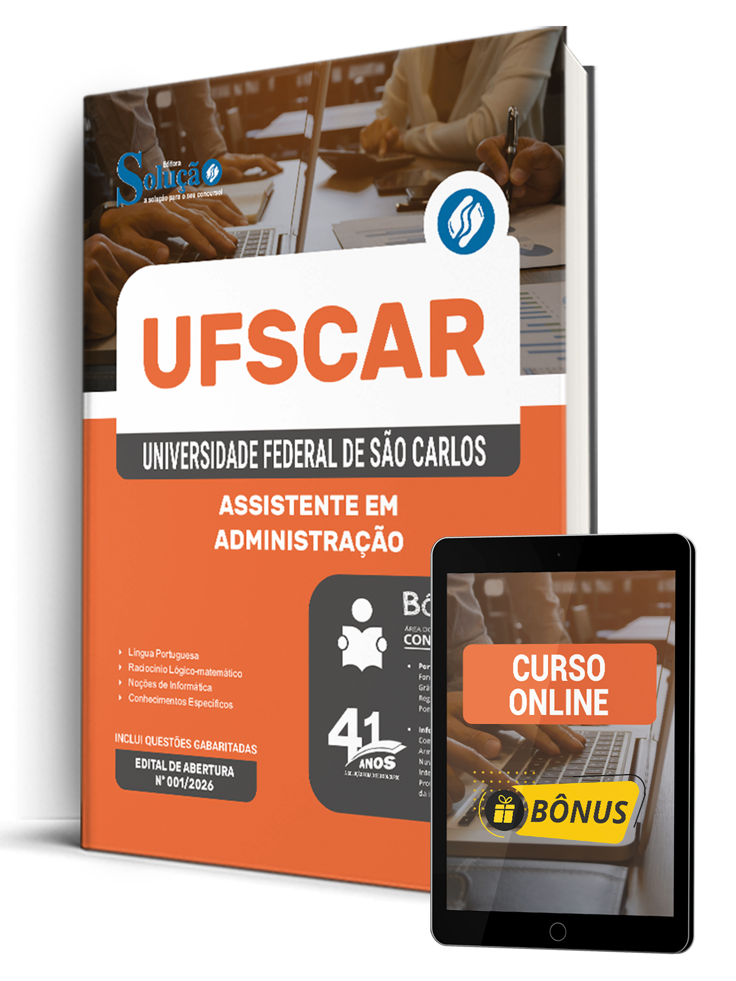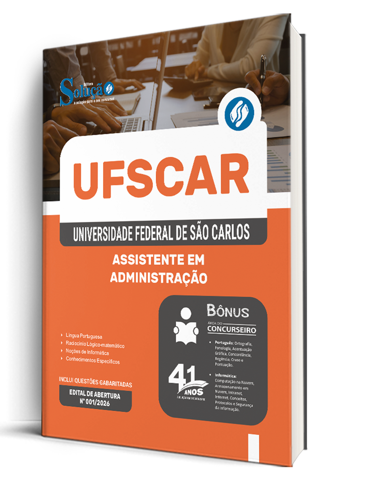 A Apostila Universidade Federal de São Carlos 2026 - Assistente em Administração foi organizada para proporcionar um melhor rendimento na sua preparação, abordando cada conteúdo de forma objetiva e direcionada. Estude para o Concurso da Universidade Federal de São Carlos 2026 com um material de acordo com o Edital oficial para o cargo de Assistente em Administração.