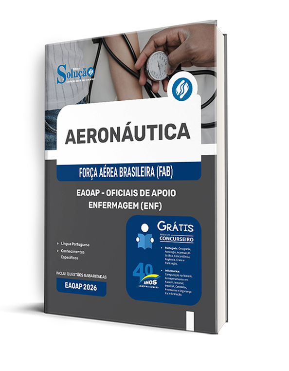 A Apostila Aeronáutica do Brasil 2026 - EAOAP - Oficiais de Apoio - Enfermagem (ENF) foi organizada para proporcionar um melhor rendimento na sua preparação, abordando cada conteúdo de forma objetiva e direcionada. Estude para o Concurso da Aeronáutica do Brasil 2026 com um material de acordo com o Edital oficial para o cargo de EAOAP - Oficiais de Apoio - Enfermagem (ENF).