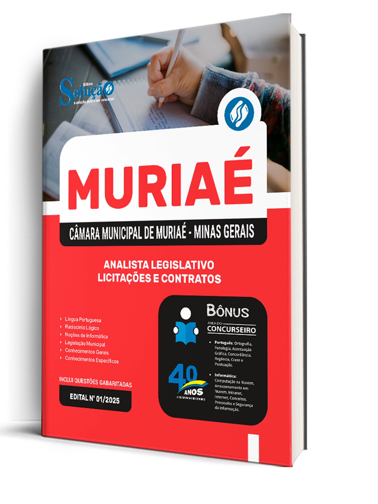 A Apostila Câmara Municipal de Muriaé - MG 2025 - Analista Legislativo – Licitações e Contratos foi organizada para proporcionar um melhor rendimento na sua preparação, abordando cada conteúdo de forma objetiva e direcionada. Estude para o Concurso da Câmara Municipal de Muriaé - MG 2025 com um material de acordo com o Edital oficial para o cargo de Analista Legislativo – Licitações e Contratos.