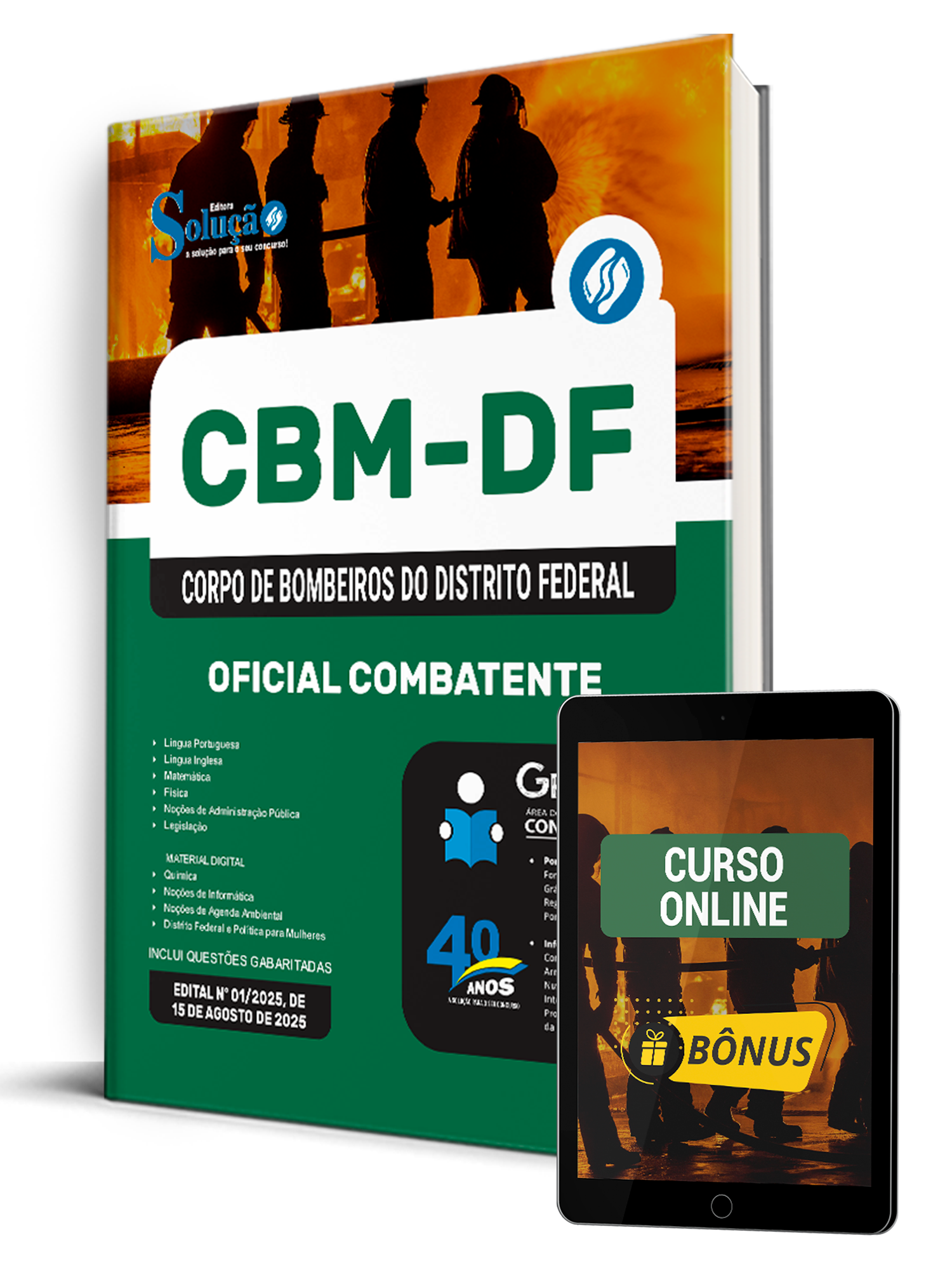 A Apostila Corpo de Bombeiros Militar do Distrito Federal 2025 - Oficial Combatente foi organizada para proporcionar um melhor rendimento na sua preparação, abordando cada conteúdo de forma objetiva e direcionada. Estude para o Concurso da Corpo de Bombeiros Militar do Distrito Federal 2025 com um material de acordo com o Edital oficial para o cargo de Oficial Combatente.