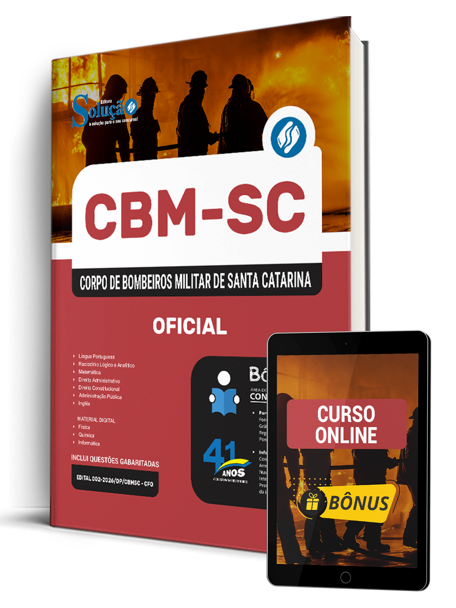 A Apostila Corpo de Bombeiros Militar de Santa Catarina 2026 - Curso de Formação de Oficiais foi organizada para proporcionar um melhor rendimento na sua preparação, abordando cada conteúdo de forma objetiva e direcionada. Estude para o Concurso da Corpo de Bombeiros Militar de Santa Catarina 2026 com um material de acordo com o Edital oficial para o cargo de Curso de Formação de Oficiais.