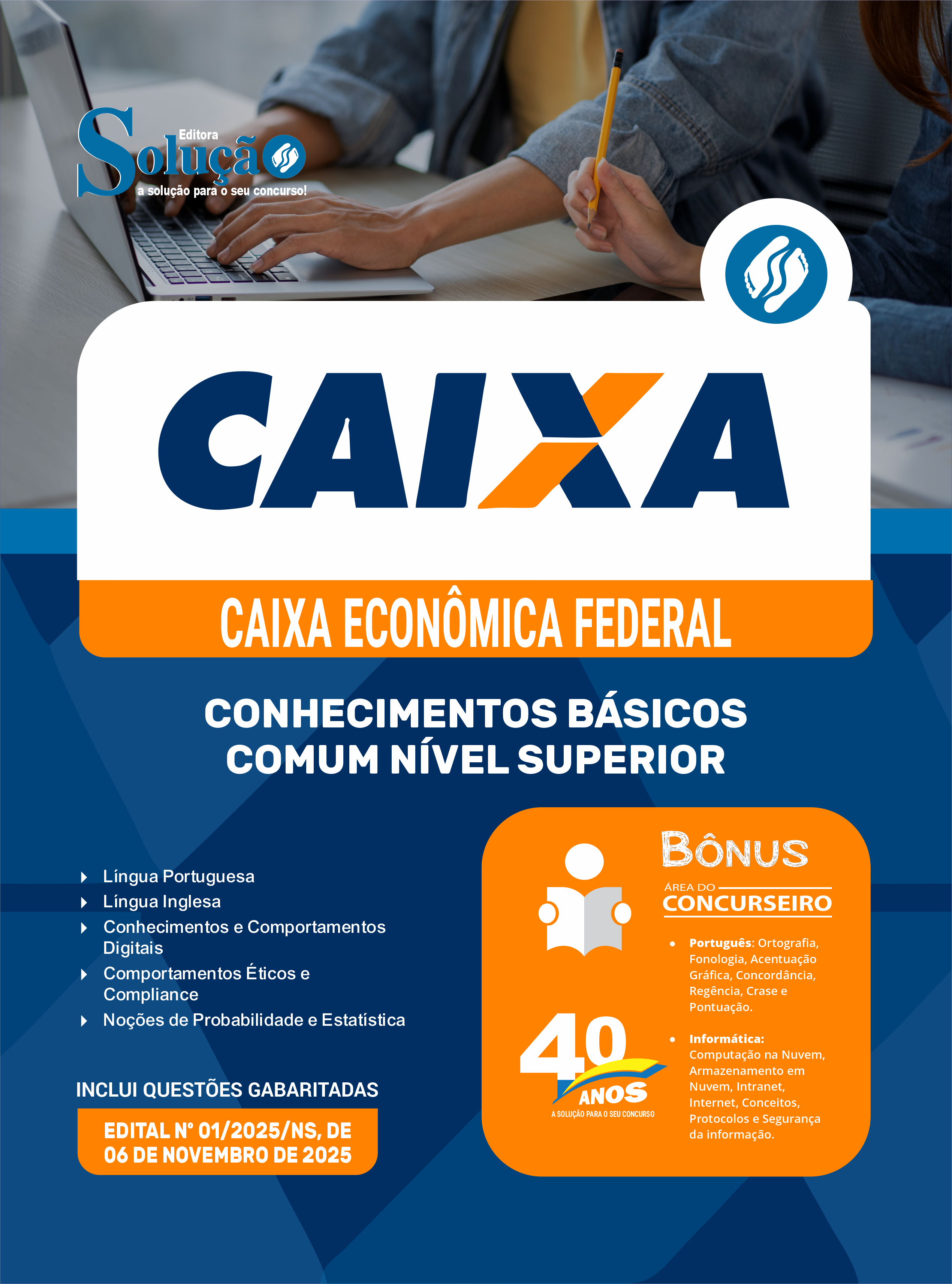 A Apostila Caixa Econômica Federal 01 - 2025 - Conhecimentos Básicos - Comum Nível Superior foi organizada para proporcionar um melhor rendimento na sua preparação, abordando cada conteúdo de forma objetiva e direcionada. Estude para o Concurso da Caixa Econômica Federal 01 - 2025 com um material de acordo com o Edital oficial para o cargo de Conhecimentos Básicos - Comum Nível Superior.