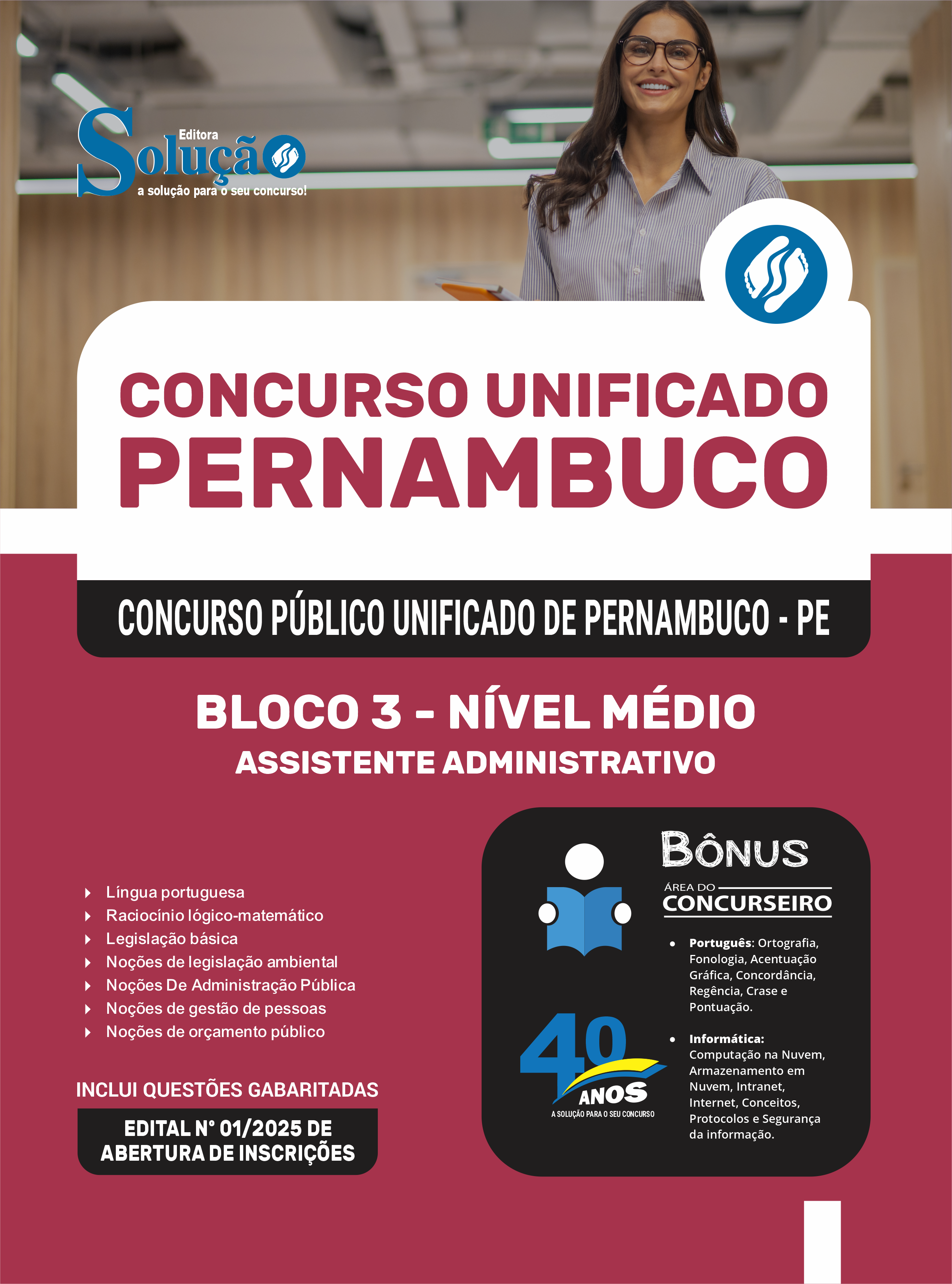 Apostila Concurso Unificado Pernambuco 2025 - Bloco 3 - Nível Médio - Assistente Administrativo