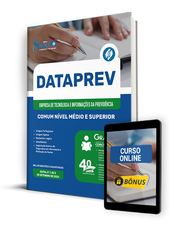 A Apostila DATAPREV 2024 - Comum Nível Médio e Superior: Auxiliar de enfermagem do trabalho; Técnico de segurança do trabalho; Analista de Processamento; Analista de Tecnologia da Informação; Engenheiro de Segurança do Trabalho; Médico do Trabalho; Auxiliar de Enfermagem do Trabalho; Técnico de Segurança do Trabalho; Analista de: Advocacia; Análise de Negócios; Arquitetura e Engenharia Tecnológica; Comunicação Social; Contabilidade; Desenvolvimento de Software; e Engenharia (Civil, Elétrica, Mecânica e de Dados); Estratégia e Governança; e Gestão de Pessoas foi organizada para proporcionar um melhor rendimento na sua preparação, abordando cada conteúdo de forma objetiva e direcionada. Estude para o Concurso da DATAPREV - Empresa de Tecnologia e Informações da Previdência Social 2024 com um material de acordo com o Edital oficial para o cargo de Comum Nível Médio e Superior.