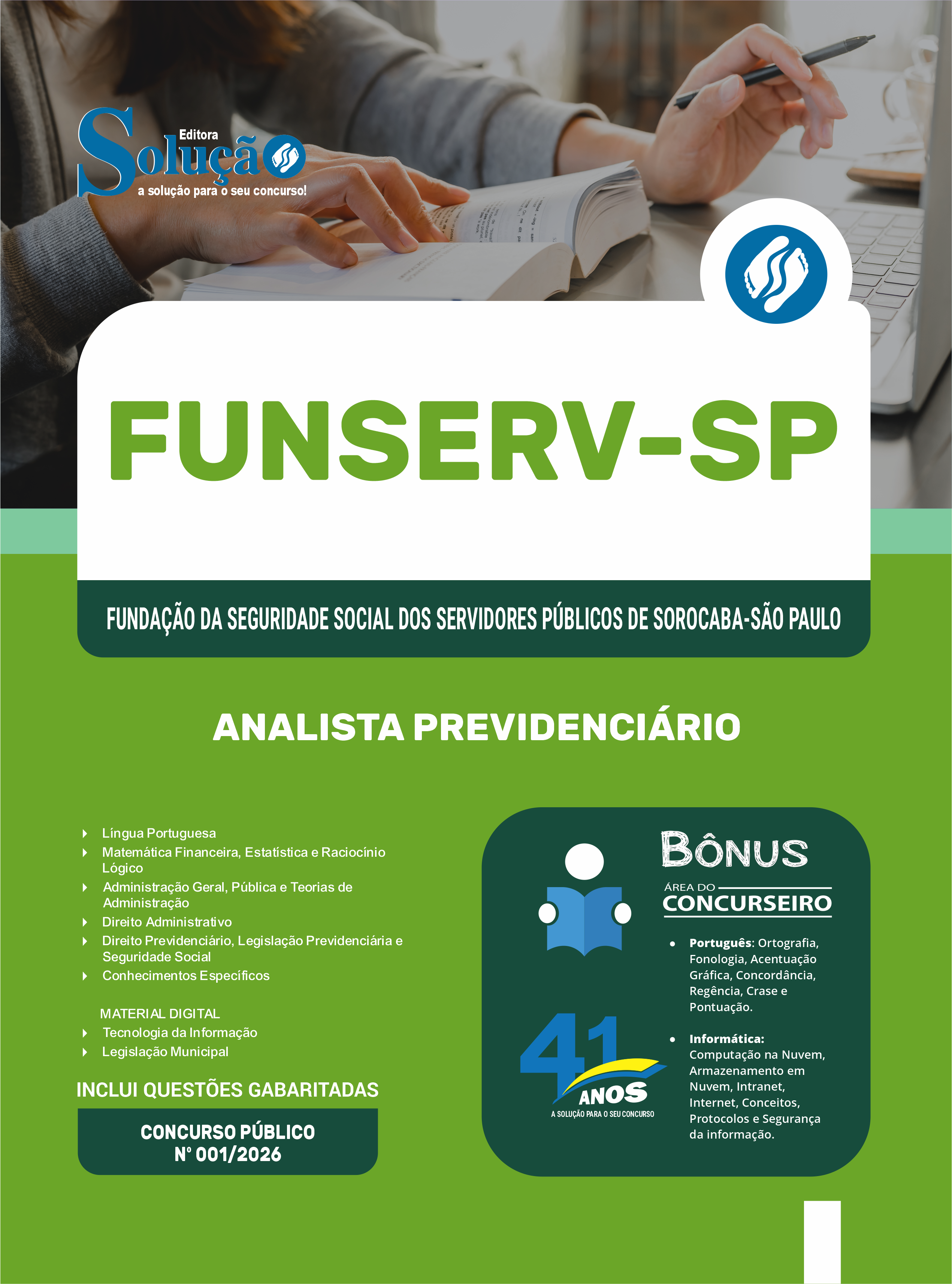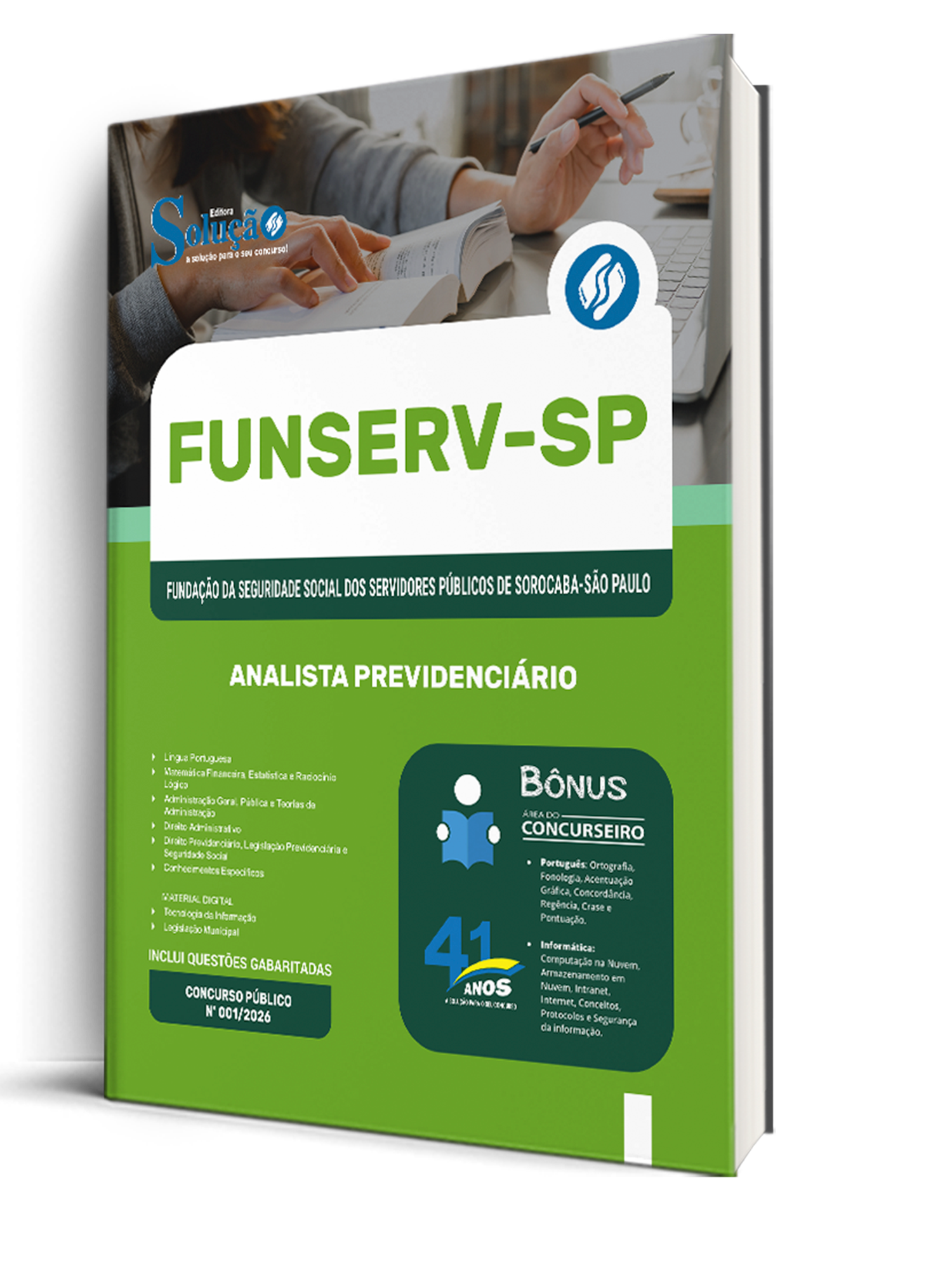 A Apostila Fundação da Seguridade Social dos Servidores Públicos Municipais de Sorocaba 2026 - Analista Previdenciário foi organizada para proporcionar um melhor rendimento na sua preparação, abordando cada conteúdo de forma objetiva e direcionada. Estude para o Concurso da Fundação da Seguridade Social dos Servidores Públicos Municipais de Sorocaba 2026 com um material de acordo com o Edital oficial para o cargo de Analista Previdenciário.
