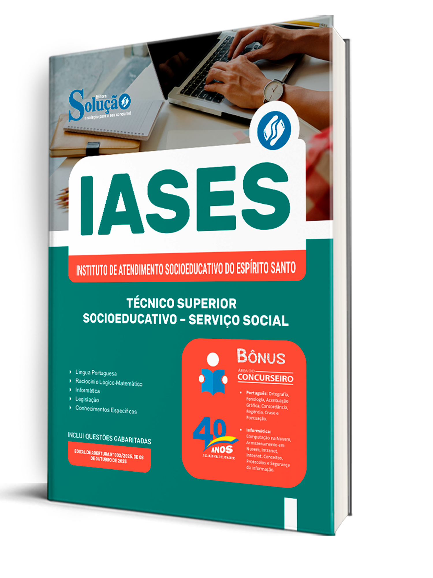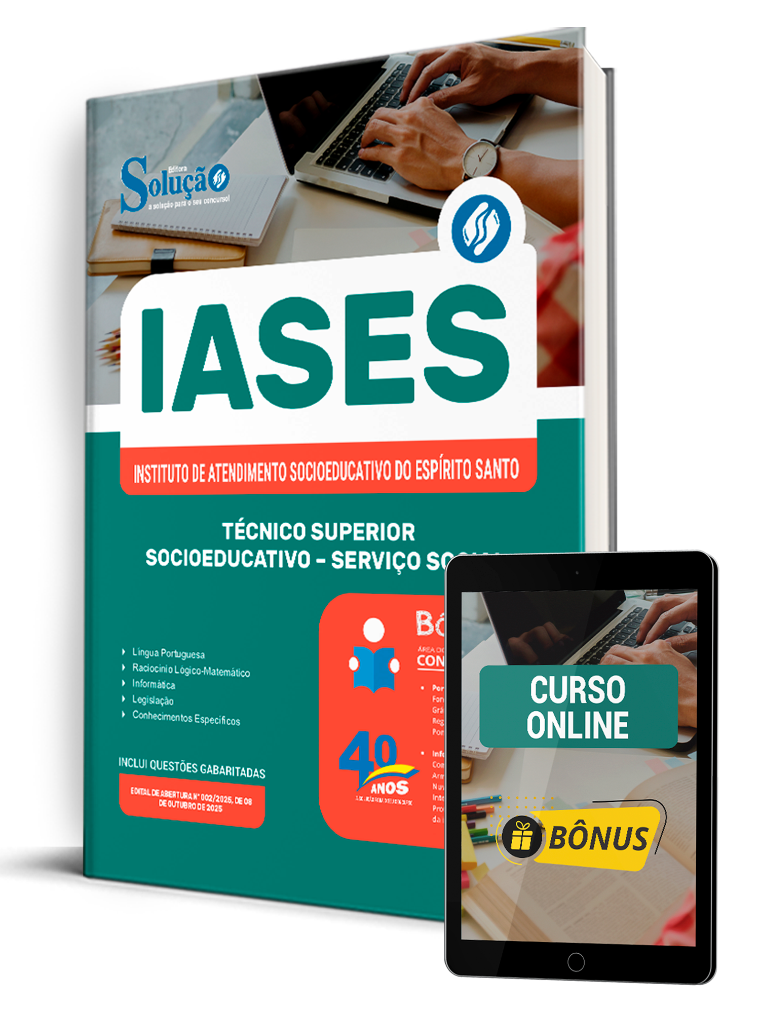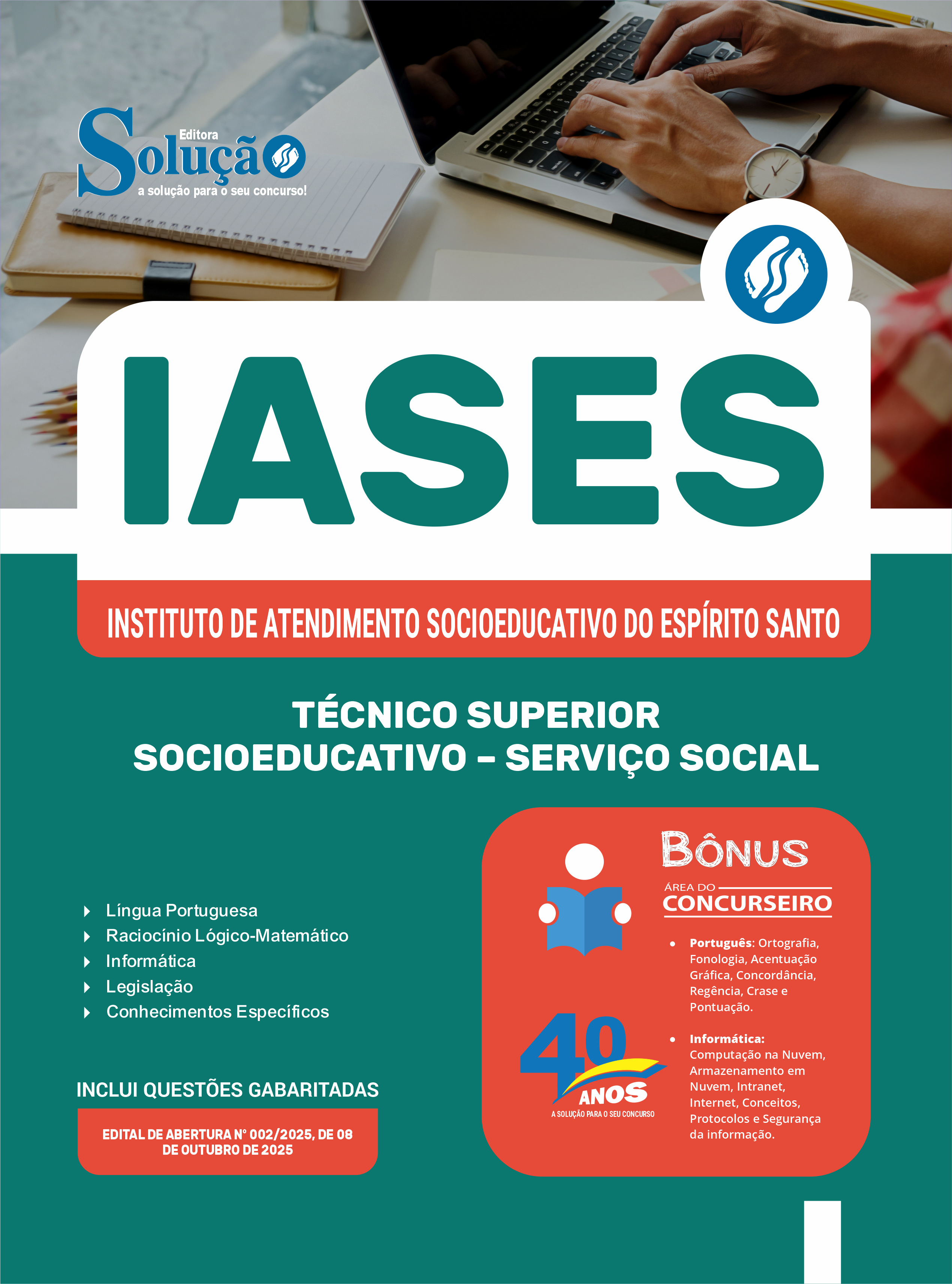 A Apostila Instituto de Atendimento Socioeducativo do Espírito Santo 2025 - Técnico Superior Socioeducativo - Serviço Social foi organizada para proporcionar um melhor rendimento na sua preparação, abordando cada conteúdo de forma objetiva e direcionada. Estude para o Concurso da Instituto de Atendimento Socioeducativo do Espírito Santo 2025 com um material de acordo com o Edital oficial para o cargo de Técnico Superior Socioeducativo - Serviço Social.
