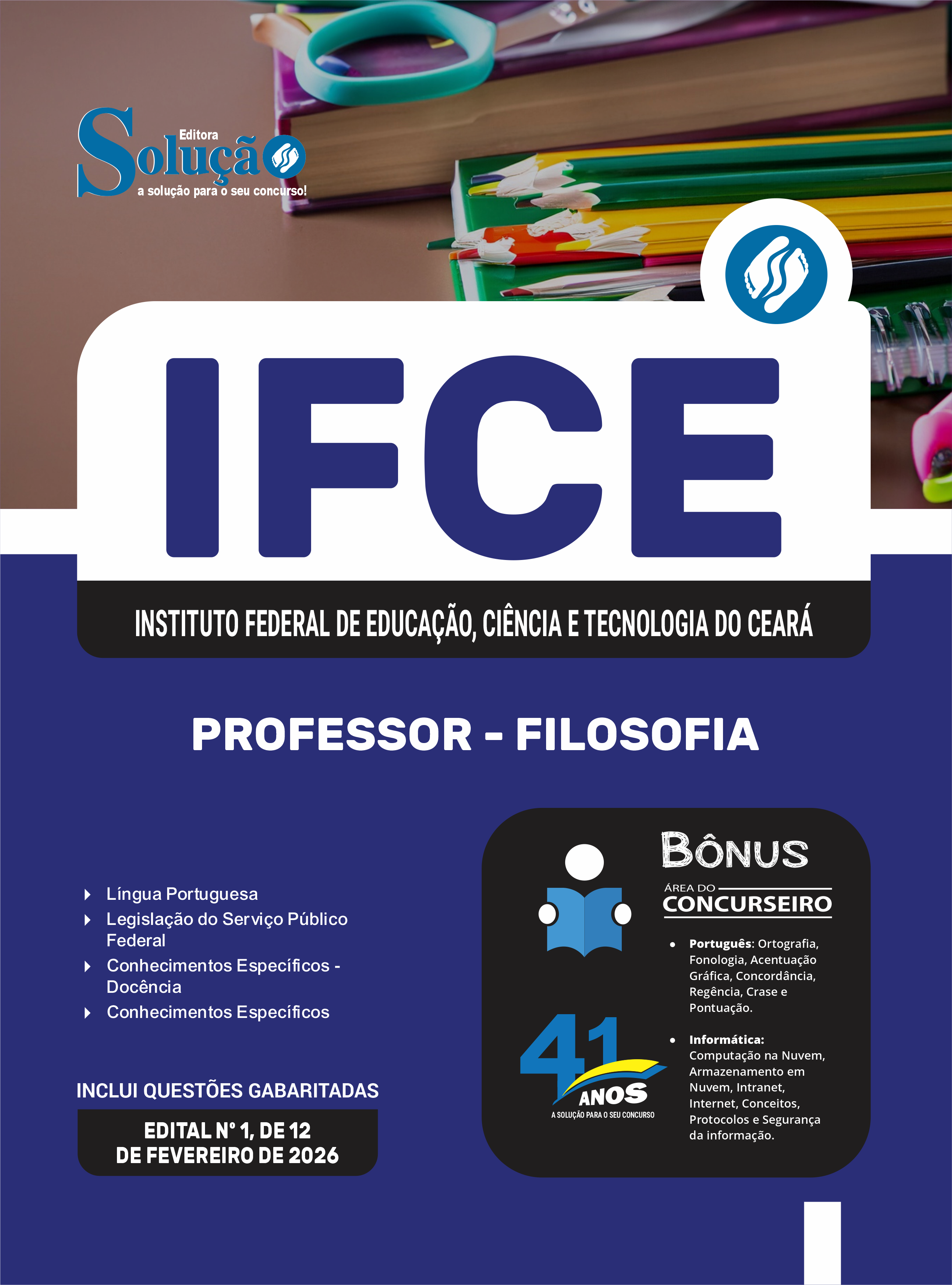A Apostila Digital Instituto Federal de Educação, Ciência e Tecnologia do Ceará em PDF 2026 - Professor - Filosofia foi organizada para proporcionar um melhor rendimento na sua preparação, abordando cada conteúdo de forma objetiva e direcionada. Estude para o Concurso da Instituto Federal de Educação, Ciência e Tecnologia do Ceará 2026 com um material de acordo com o Edital oficial para o cargo de Professor - Filosofia.