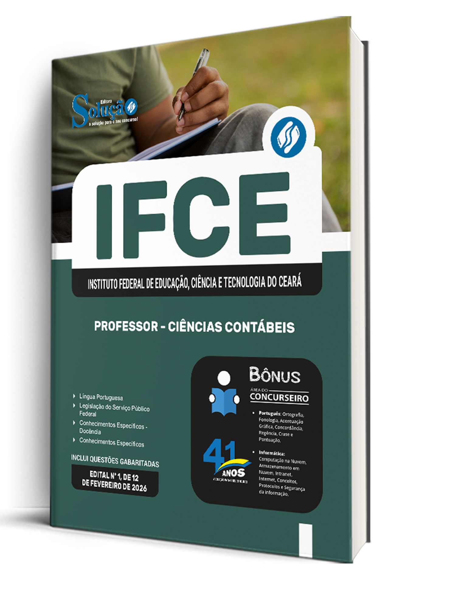 A Apostila Instituto Federal de Educação, Ciência e Tecnologia do Ceará 2026 - Professor - Ciências Contábeis foi organizada para proporcionar um melhor rendimento na sua preparação, abordando cada conteúdo de forma objetiva e direcionada. Estude para o Concurso da Instituto Federal de Educação, Ciência e Tecnologia do Ceará 2026 com um material de acordo com o Edital oficial para o cargo de Professor - Ciências Contábeis.