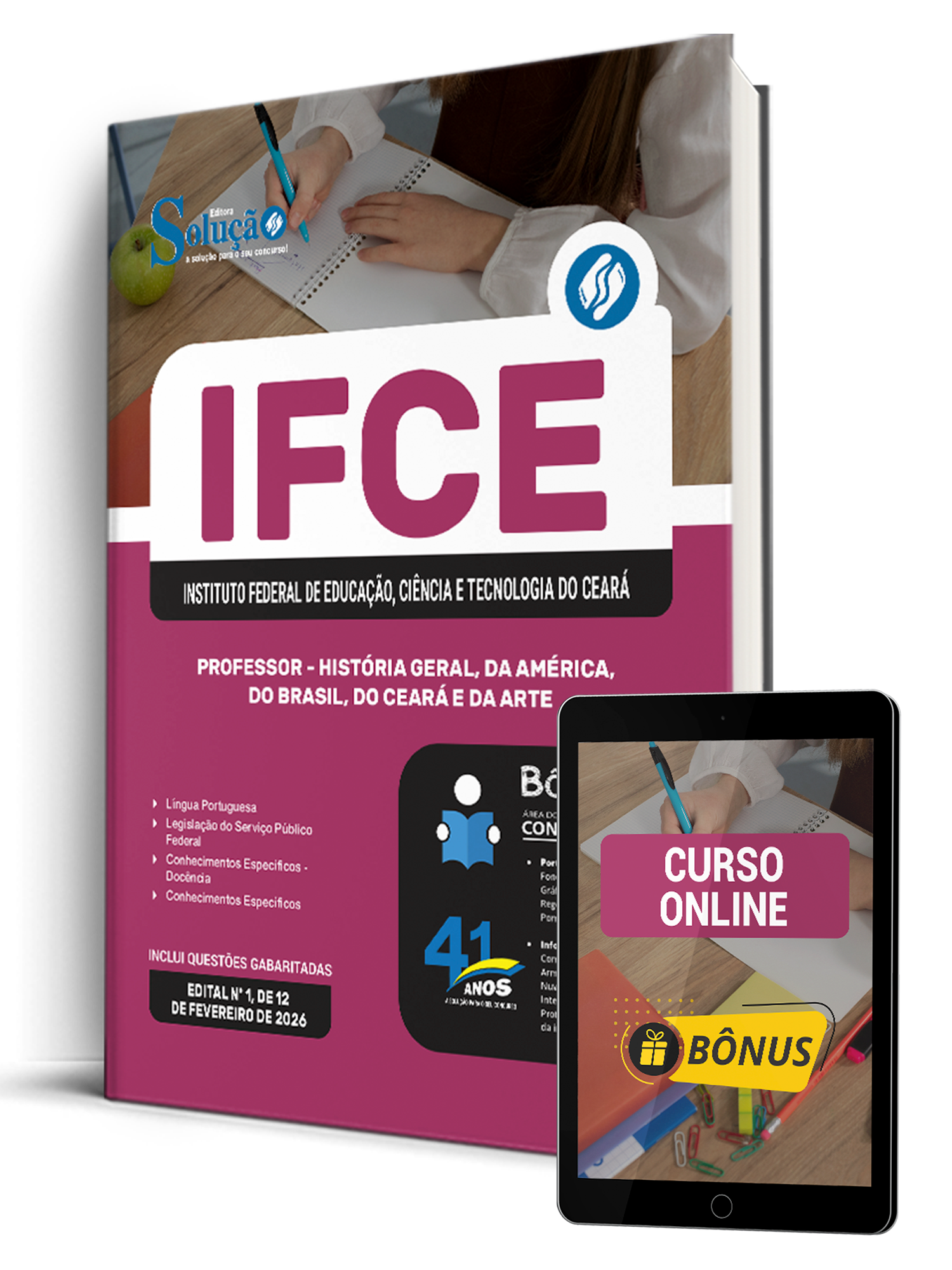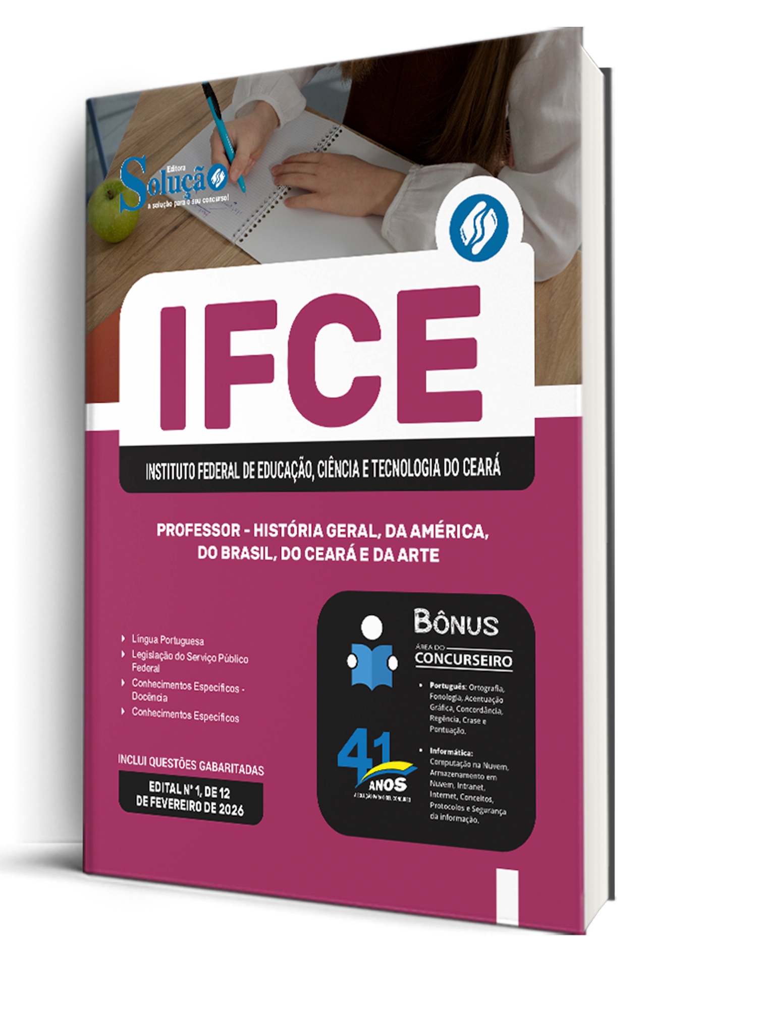 A Apostila Instituto Federal de Educação, Ciência e Tecnologia do Ceará 2026 - Professor - História Geral, da América, do Brasil, do Ceará e da Arte foi organizada para proporcionar um melhor rendimento na sua preparação, abordando cada conteúdo de forma objetiva e direcionada. Estude para o Concurso da Instituto Federal de Educação, Ciência e Tecnologia do Ceará 2026 com um material de acordo com o Edital oficial para o cargo de Professor - História Geral, da América, do Brasil, do Ceará e da Arte.