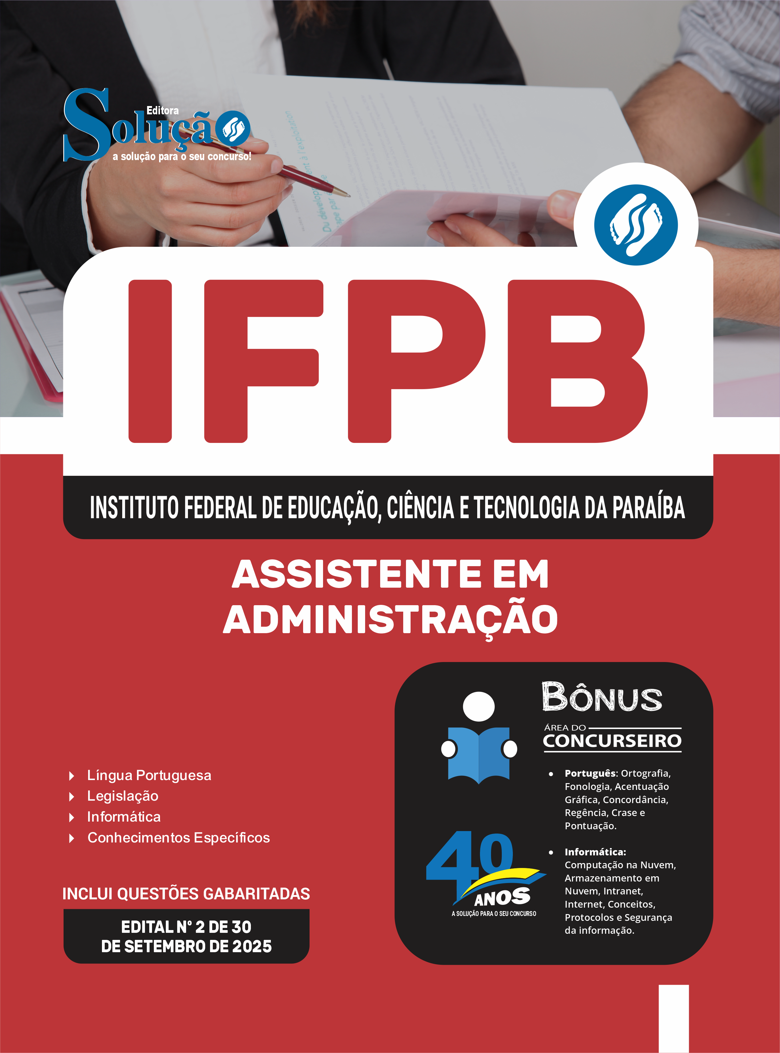 A Apostila Instituto Federal de Educação, Ciência e Tecnologia da Paraíba 2025 - Assistente em Administração foi organizada para proporcionar um melhor rendimento na sua preparação, abordando cada conteúdo de forma objetiva e direcionada. Estude para o Concurso da Instituto Federal de Educação, Ciência e Tecnologia da Paraíba 2025 com um material de acordo com o Edital oficial para o cargo de Assistente em Administração.