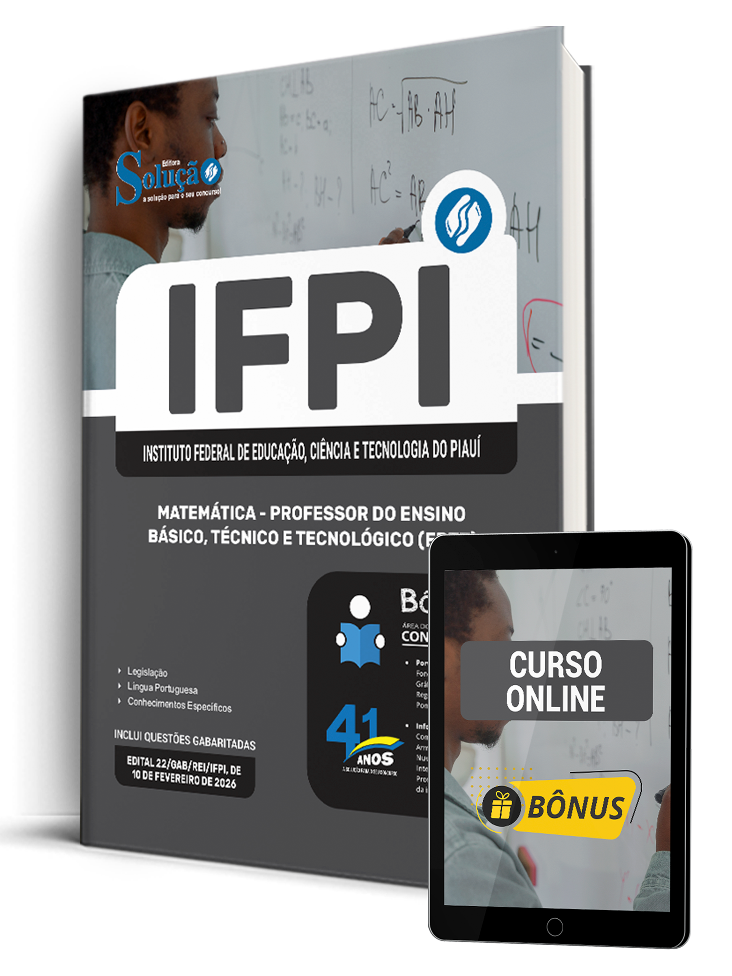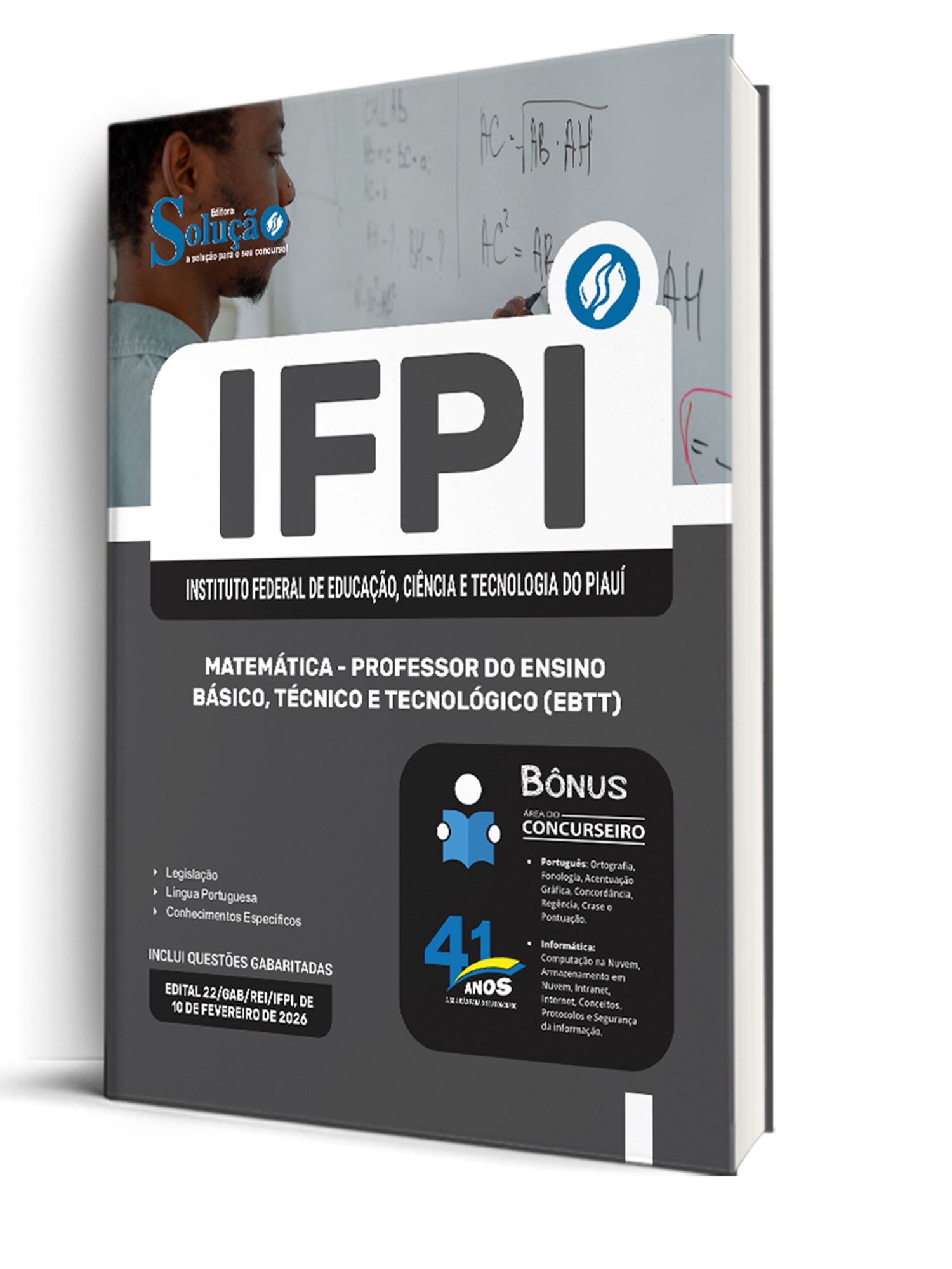 A Apostila Instituto Federal de Educação, Ciência e Tecnologia do Piauí 2026 - Professor do Ensino Básico, Técnico e Tecnológico (EBTT) - Matemática foi organizada para proporcionar um melhor rendimento na sua preparação, abordando cada conteúdo de forma objetiva e direcionada. Estude para o Concurso da Instituto Federal de Educação, Ciência e Tecnologia do Piauí 2026 com um material de acordo com o Edital oficial para o cargo de Professor do Ensino Básico, Técnico e Tecnológico (EBTT) - Matemática.