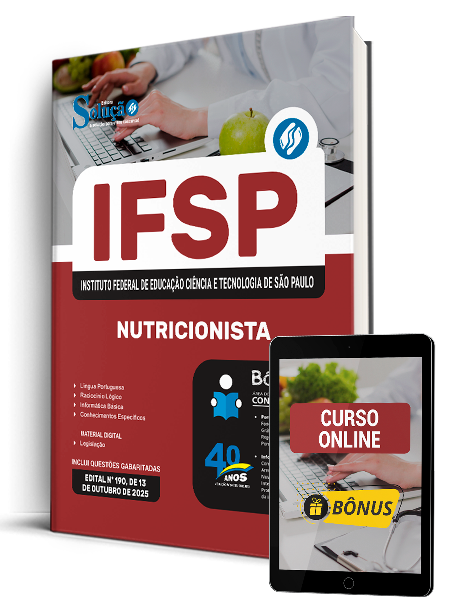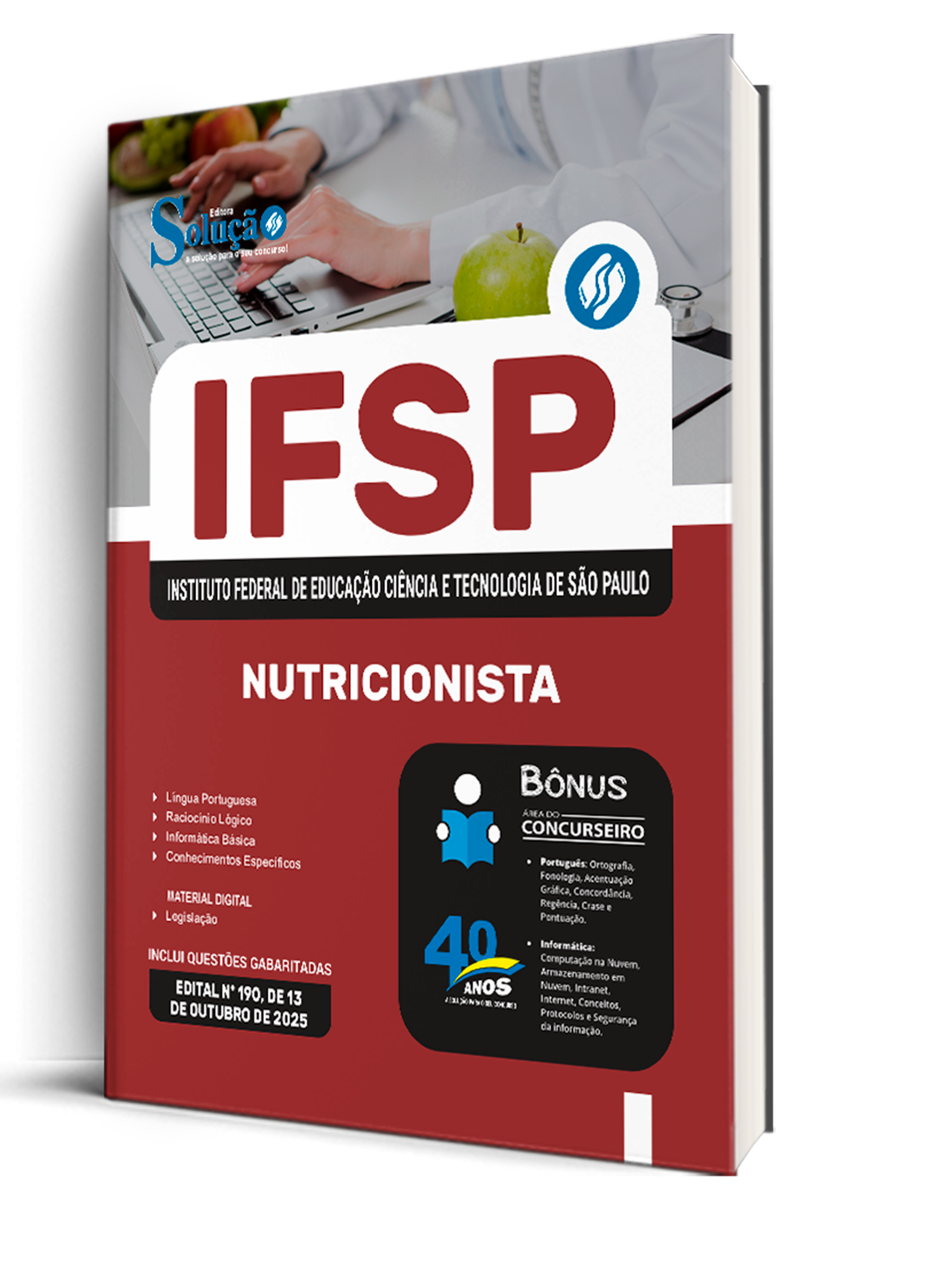A Apostila Instituto Federal de Educação,Ciência e Tecnologia de São Paulo 2025 - Nutricionista foi organizada para proporcionar um melhor rendimento na sua preparação, abordando cada conteúdo de forma objetiva e direcionada. Estude para o Concurso da Instituto Federal de Educação,Ciência e Tecnologia de São Paulo 2025 com um material de acordo com o Edital oficial para o cargo de Nutricionista.