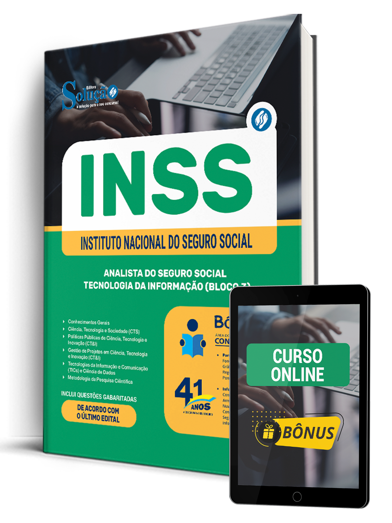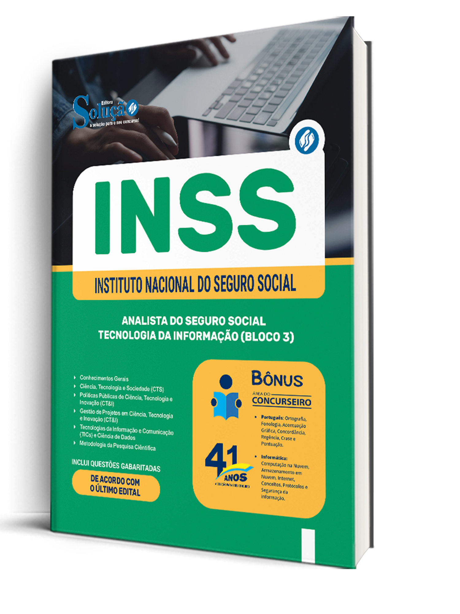 A Apostila Instituto Nacional do Seguro Social 2026 - Analista do Seguro Social - Tecnologia da Informação (Bloco 3) foi organizada para proporcionar um melhor rendimento na sua preparação, abordando cada conteúdo de forma objetiva e direcionada. Estude para o Concurso da Instituto Nacional do Seguro Social 2026 com um material de acordo com o Edital oficial para o cargo de Analista do Seguro Social - Tecnologia da Informação (Bloco 3).