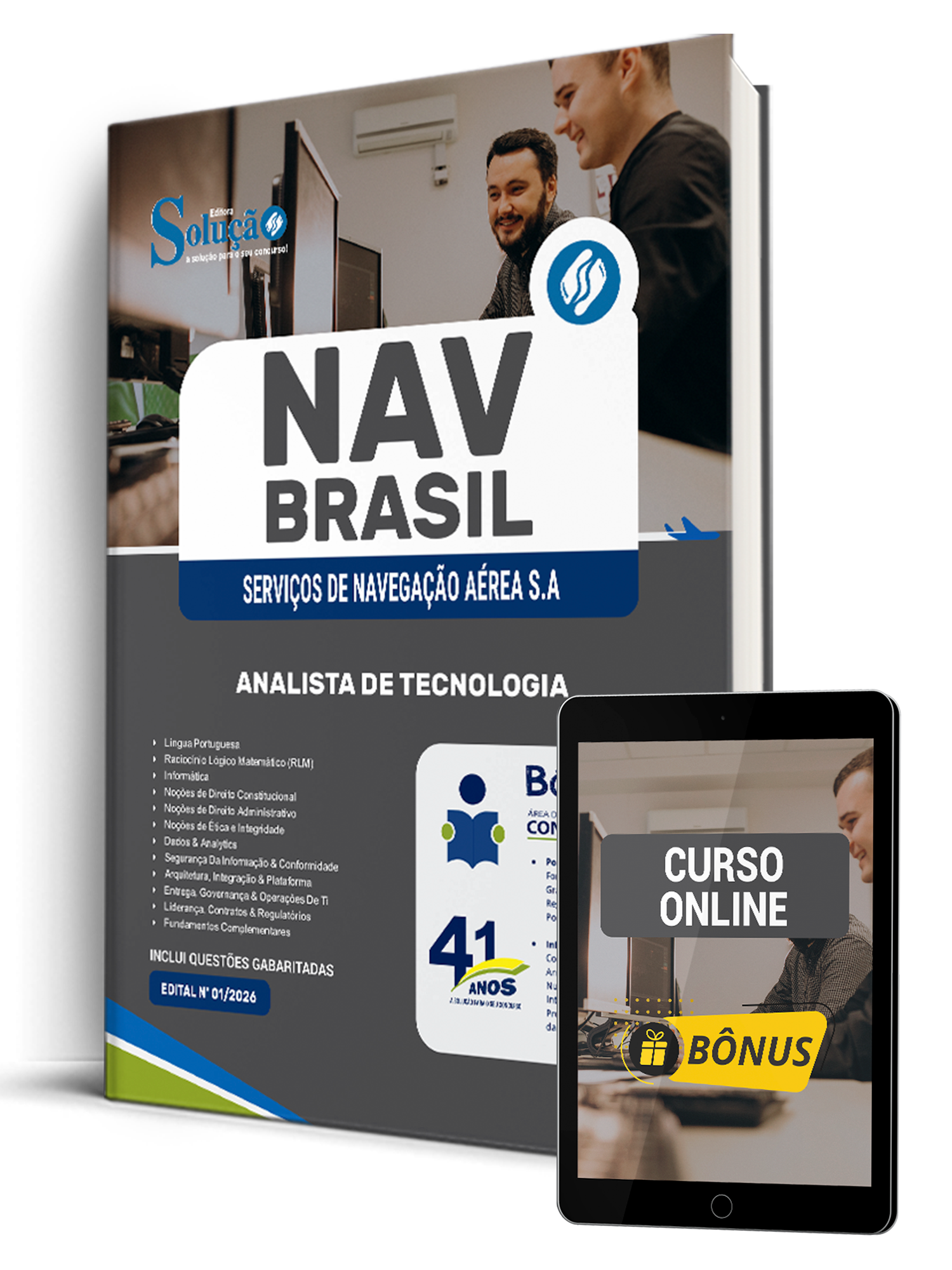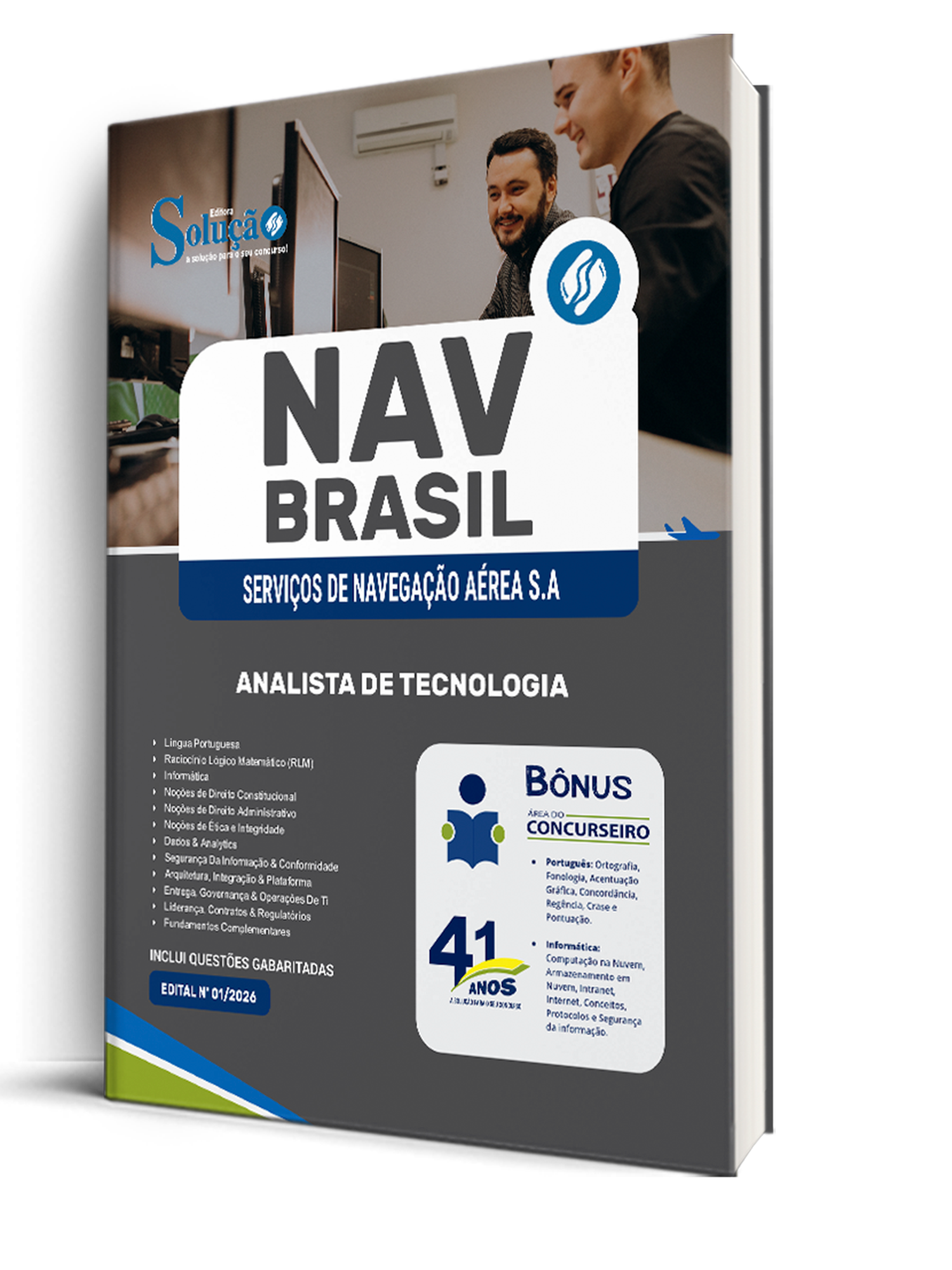 A Apostila Brasil Serviços de Navegação Áerea S/A 2026 - Analista de Tecnologia foi organizada para proporcionar um melhor rendimento na sua preparação, abordando cada conteúdo de forma objetiva e direcionada. Estude para o Concurso da Brasil Serviços de Navegação Áerea S/A 2026 com um material de acordo com o Edital oficial para o cargo de Analista de Tecnologia.