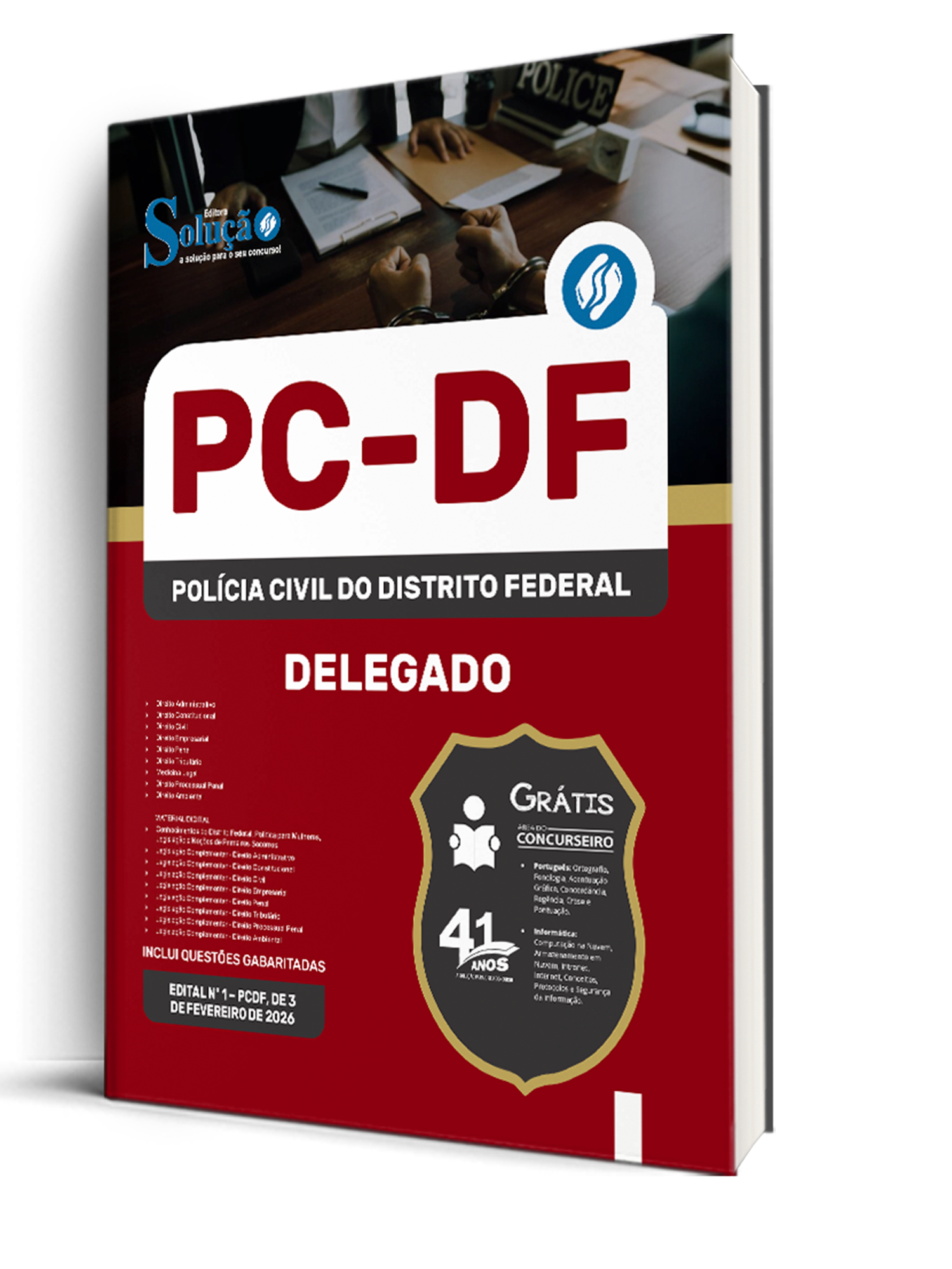 A Apostila Polícia Civil do Distrito Federal 2026 - Delegado foi organizada para proporcionar um melhor rendimento na sua preparação, abordando cada conteúdo de forma objetiva e direcionada. Estude para o Concurso da Polícia Civil do Distrito Federal 2026 com um material de acordo com o Edital oficial para o cargo de Delegado.