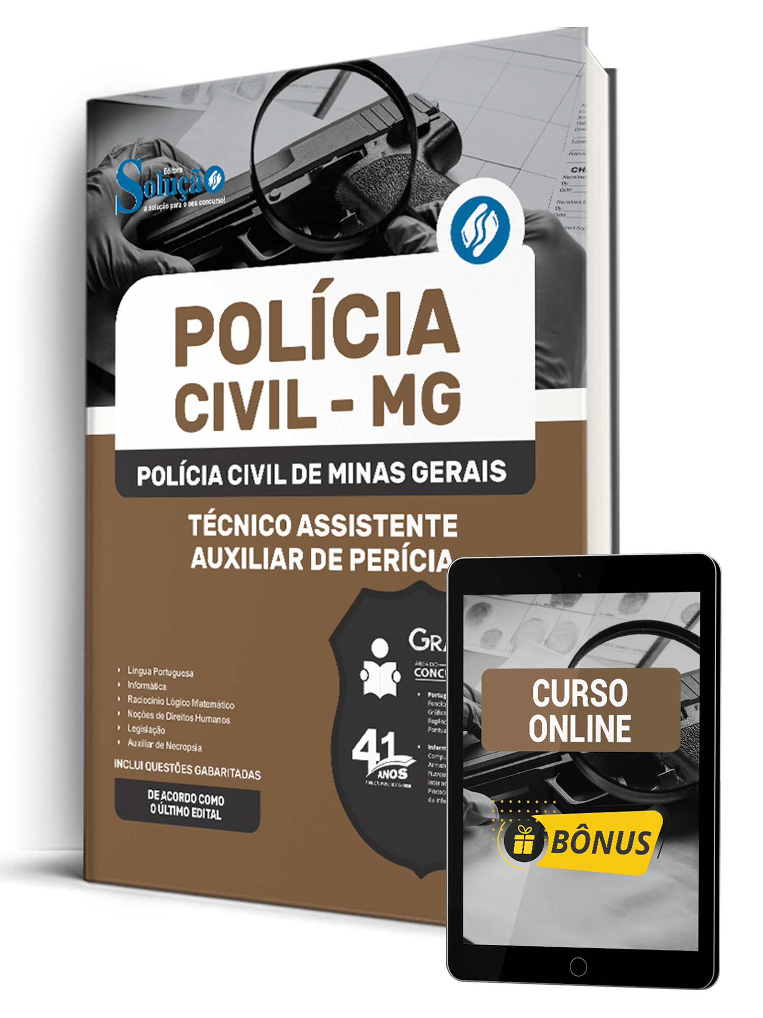 A Apostila Polícia Civil de Minas Gerais 2026 - Técnico Assistente - Auxiliar de Perícia foi organizada para proporcionar um melhor rendimento na sua preparação, abordando cada conteúdo de forma objetiva e direcionada. Estude para o Concurso da Polícia Civil de Minas Gerais 2026 com um material de acordo com o último Edital oficial para o cargo de Técnico Assistente - Auxiliar de Perícia.