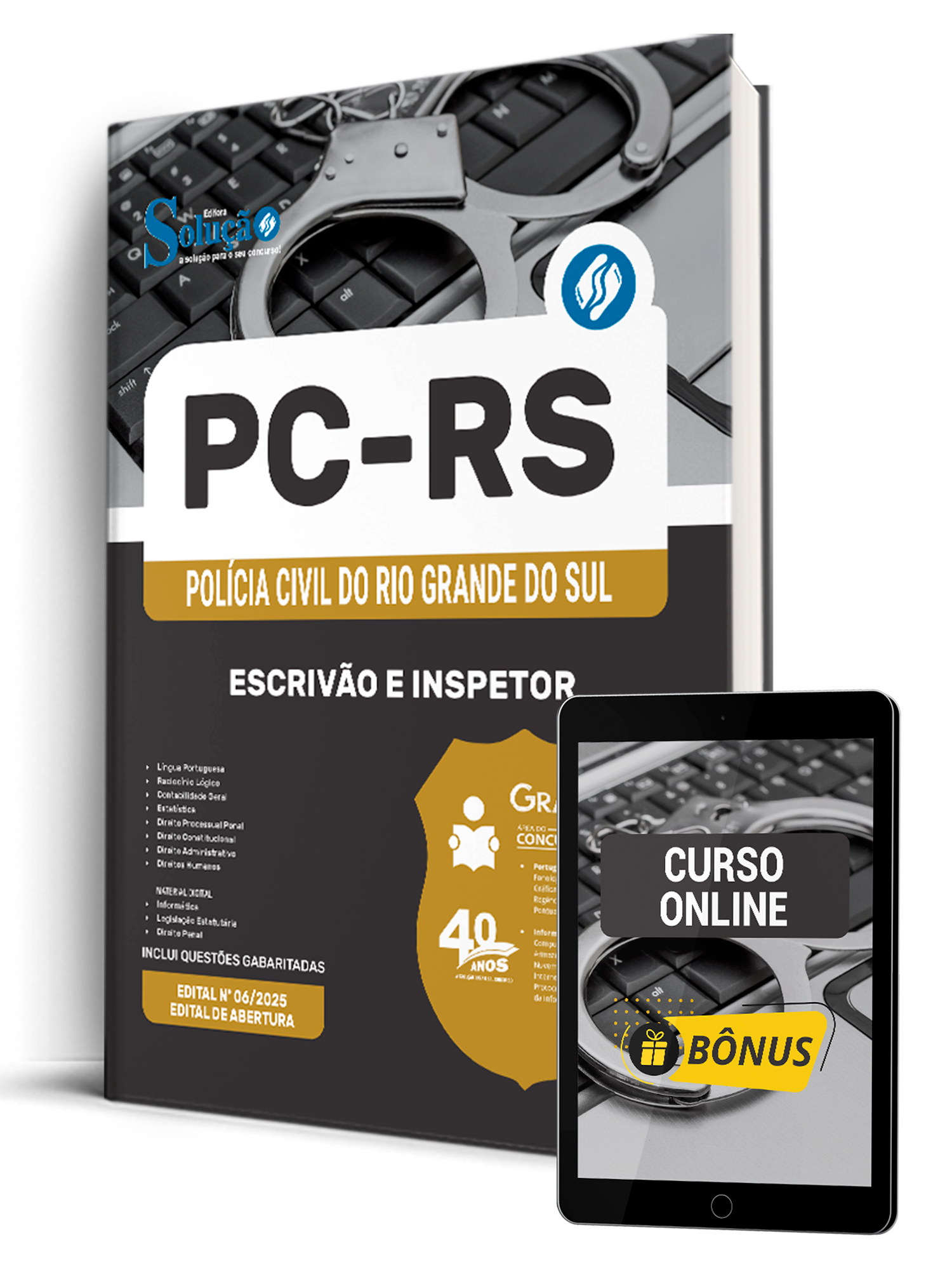 A Apostila Polícia Civil do Rio Grande do Sul 2025 - Escrivão e Inspetor foi organizada para proporcionar um melhor rendimento na sua preparação, abordando cada conteúdo de forma objetiva e direcionada. Estude para o Concurso da Polícia Civil do Rio Grande do Sul 2025 com um material de acordo com o Edital oficial para o cargo de Escrivão e Inspetor.