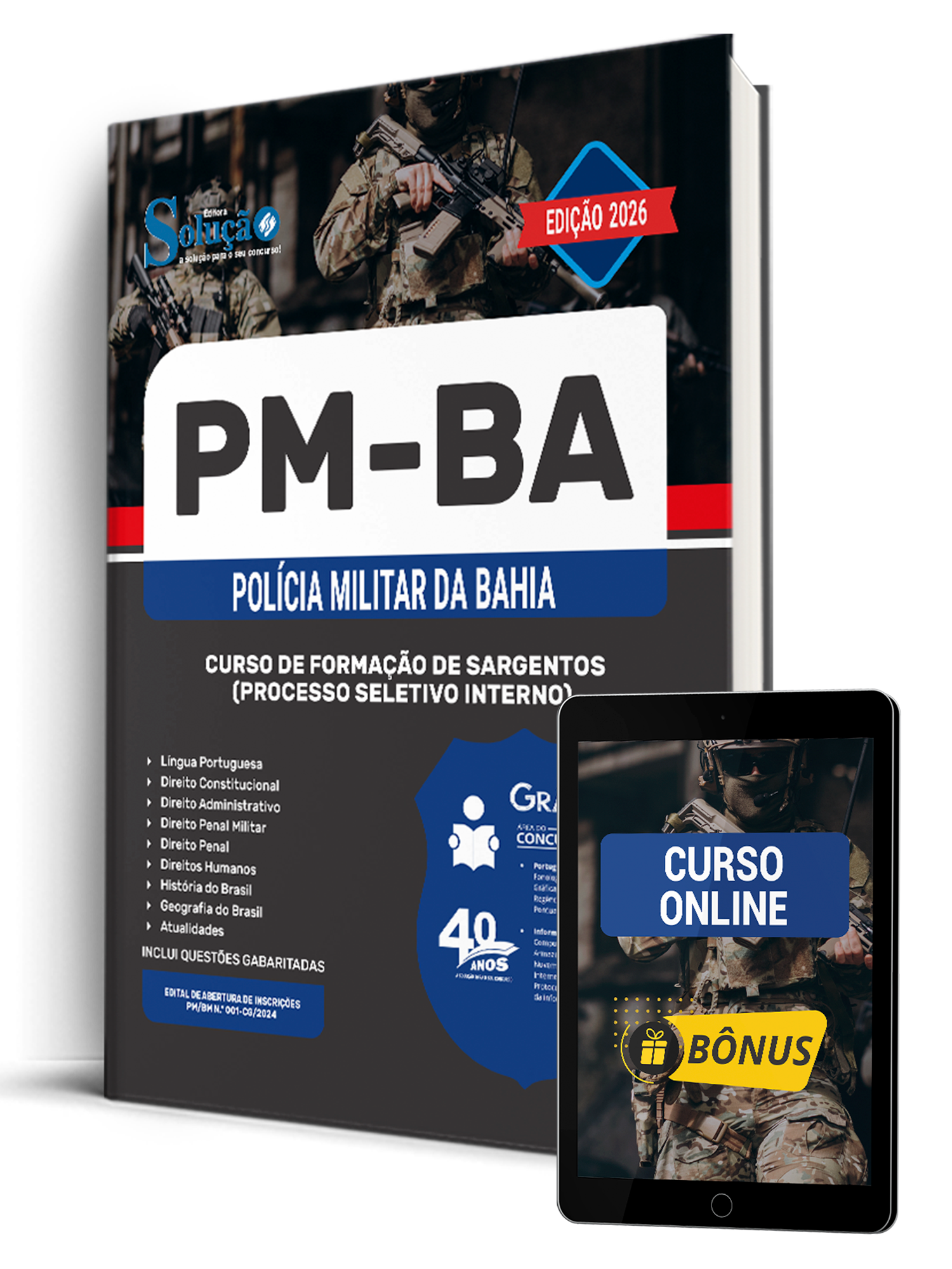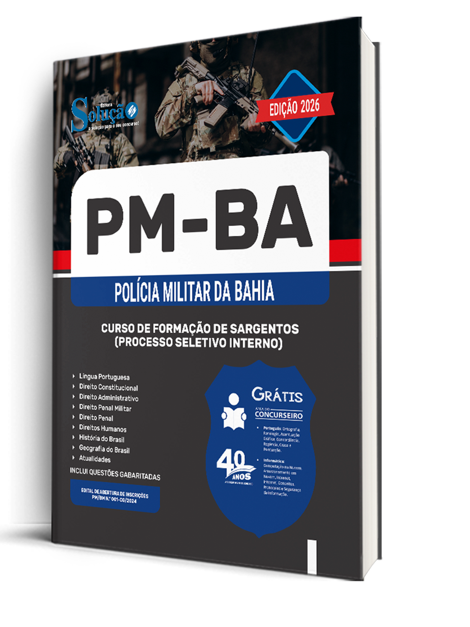 A Apostila PM-BA 2023 - Curso de Formação de Sargentos (Processo Seletivo Interno) foi organizada para proporcionar um melhor rendimento na sua preparação, abordando cada conteúdo de forma objetiva e direcionada. Estude para o Concurso da PM-BA - Polícia Militar da Bahia 2023 com um material de acordo com o Edital oficial para o cargo de Curso de Formação de Sargentos (Processo Seletivo Interno).