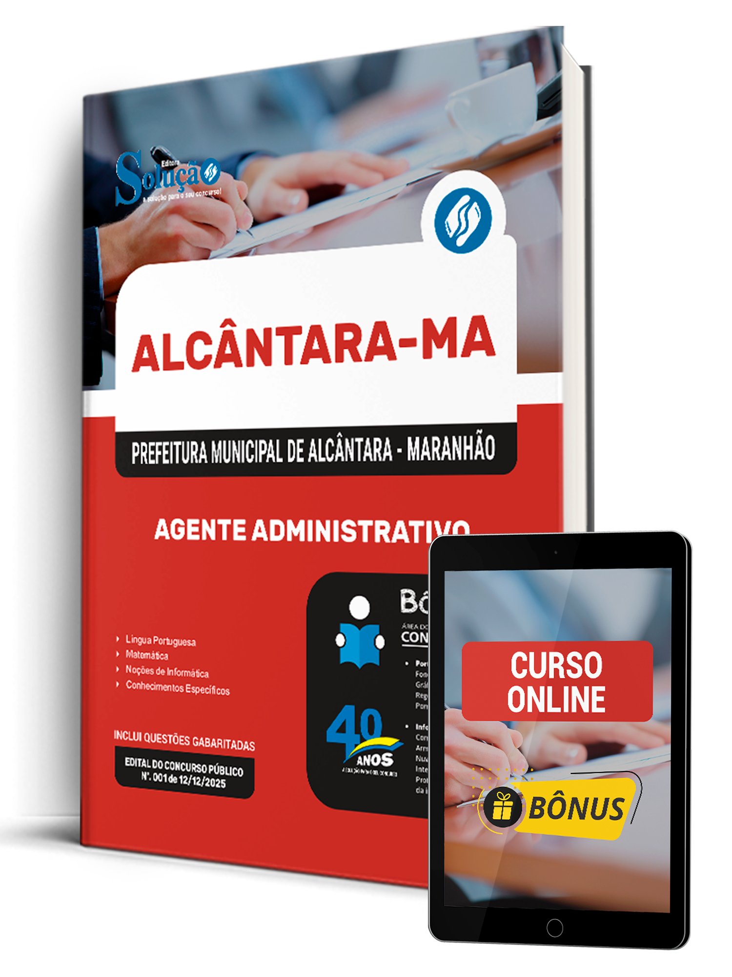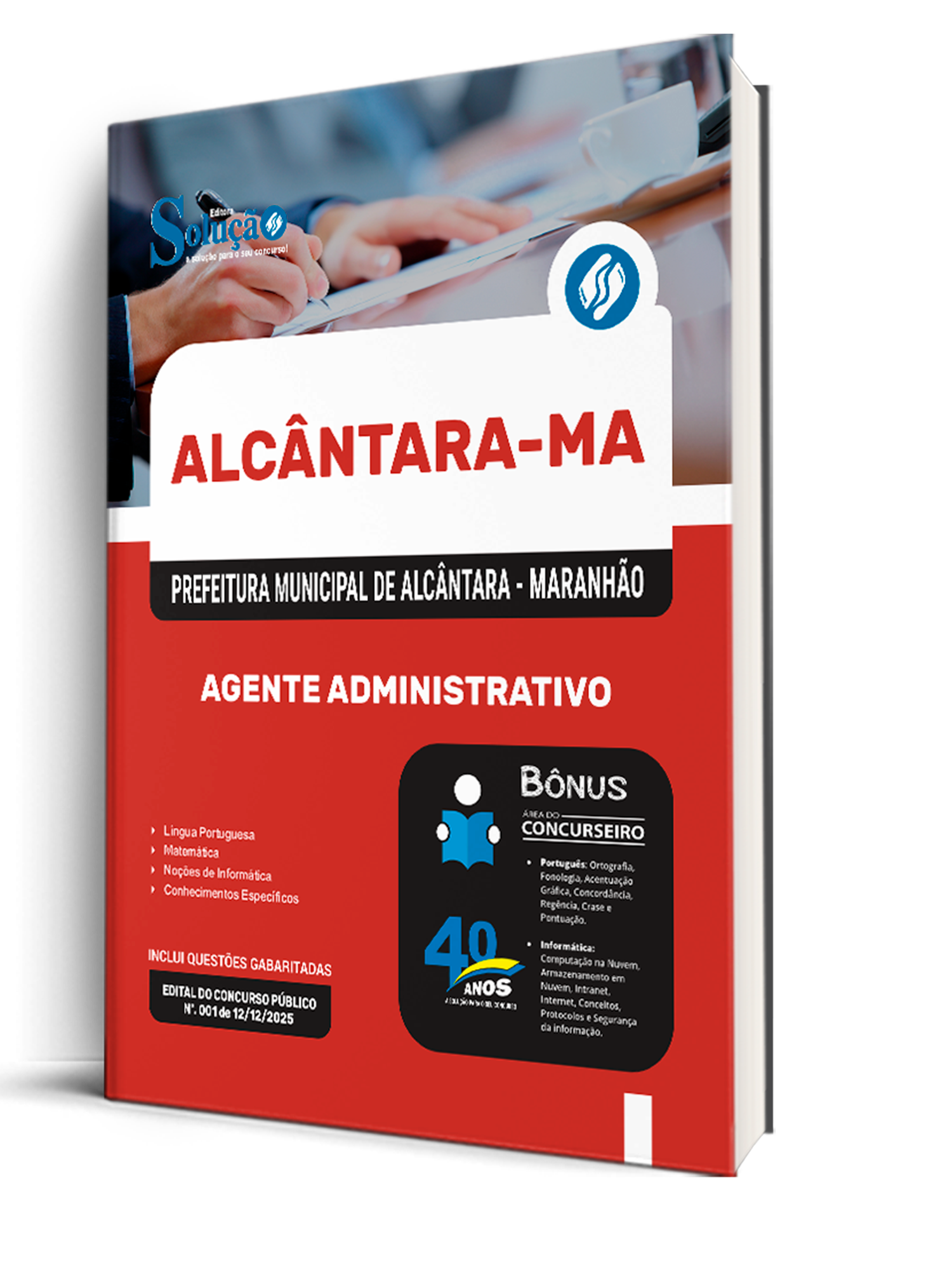A Apostila Prefeitura Municipal de Alcântara-Maranhão 2026 - Agente Administrativo foi organizada para proporcionar um melhor rendimento na sua preparação, abordando cada conteúdo de forma objetiva e direcionada. Estude para o Concurso da Prefeitura Municipal de Alcântara-Maranhão 2026 com um material de acordo com o Edital oficial para o cargo de Agente Administrativo.
