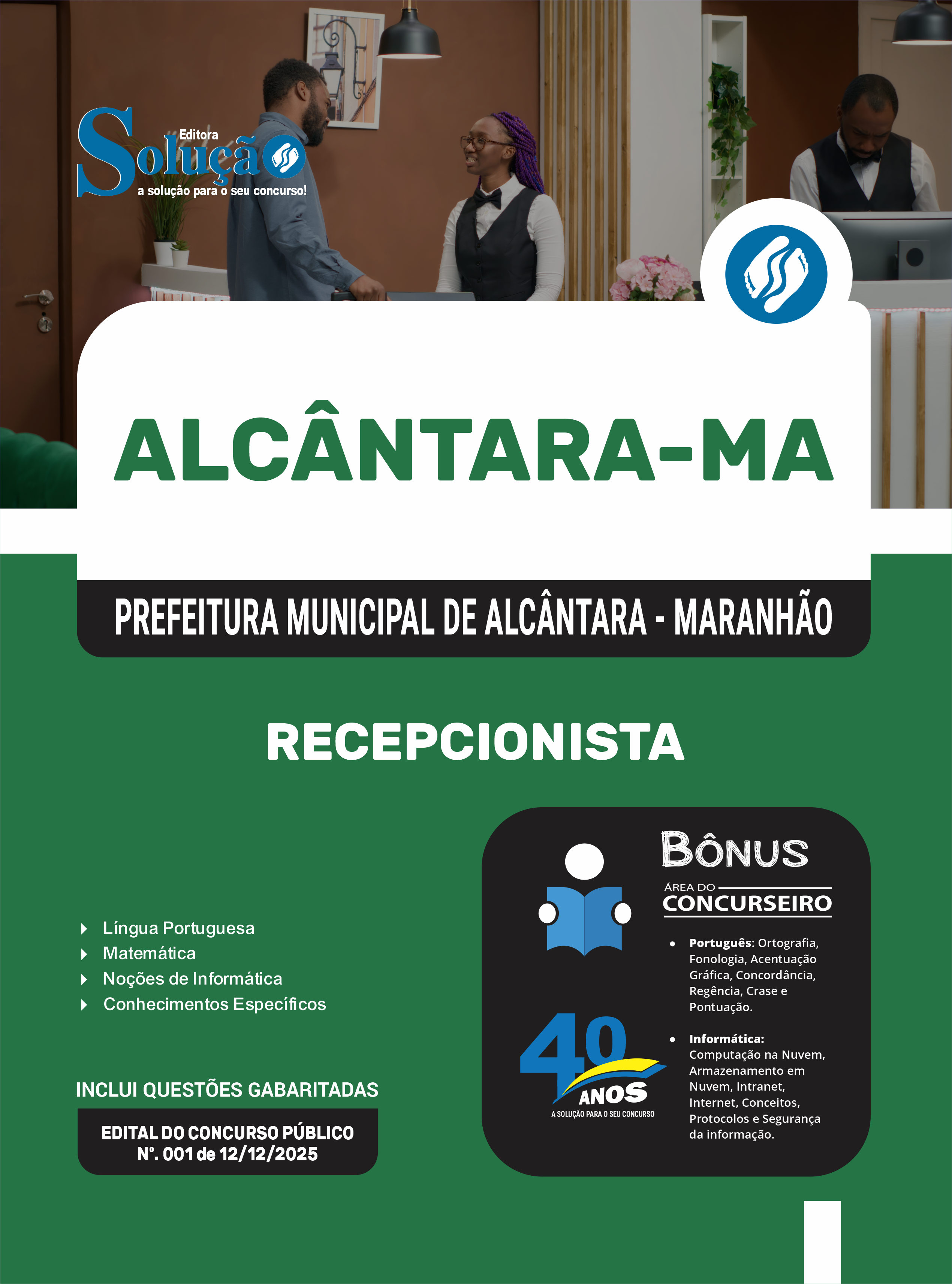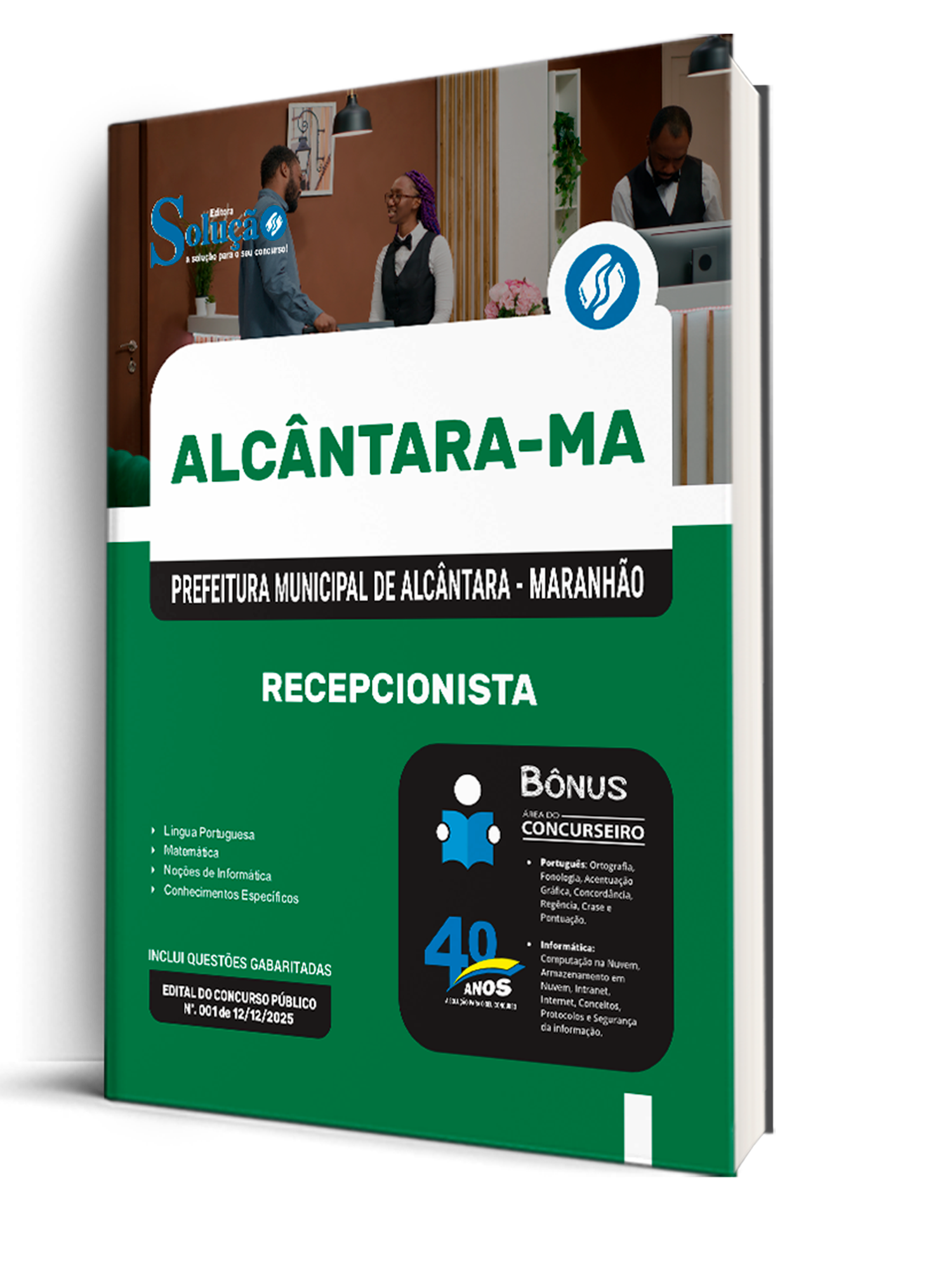 A Apostila Prefeitura Municipal de Alcântara-Maranhão 2026 - Recepcionista foi organizada para proporcionar um melhor rendimento na sua preparação, abordando cada conteúdo de forma objetiva e direcionada. Estude para o Concurso da Prefeitura Municipal de Alcântara-Maranhão 2026 com um material de acordo com o Edital oficial para o cargo de Recepcionista.