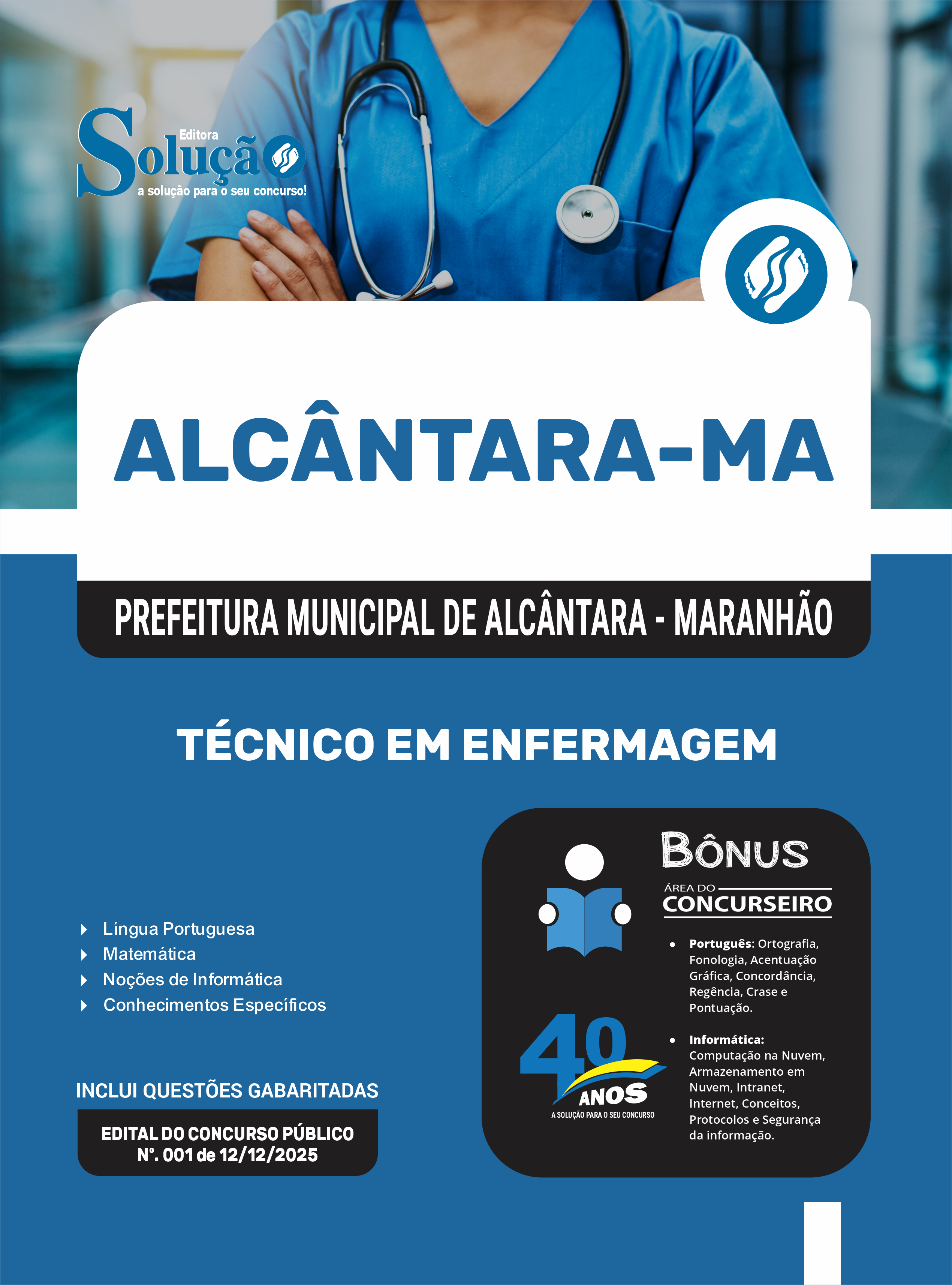 A Apostila Prefeitura Municipal de Alcântara-Maranhão 2026 - Técnico de Enfermagem foi organizada para proporcionar um melhor rendimento na sua preparação, abordando cada conteúdo de forma objetiva e direcionada. Estude para o Concurso da Prefeitura Municipal de Alcântara-Maranhão 2026 com um material de acordo com o Edital oficial para o cargo de Técnico de Enfermagem.