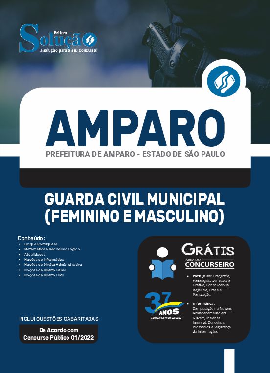 A Apostila Prefeitura de Amparo - SP - Guarda Civil Municipal (Feminino e Masculino) foi organizada para proporcionar um melhor rendimento na sua preparação, abordando cada conteúdo de forma objetiva e direcionada. Estude para o Concurso da Prefeitura de Amparo - SP 2022 com um material de acordo com o Edital oficial para o cargo de Guarda Civil Municipal (Feminino e Masculino).