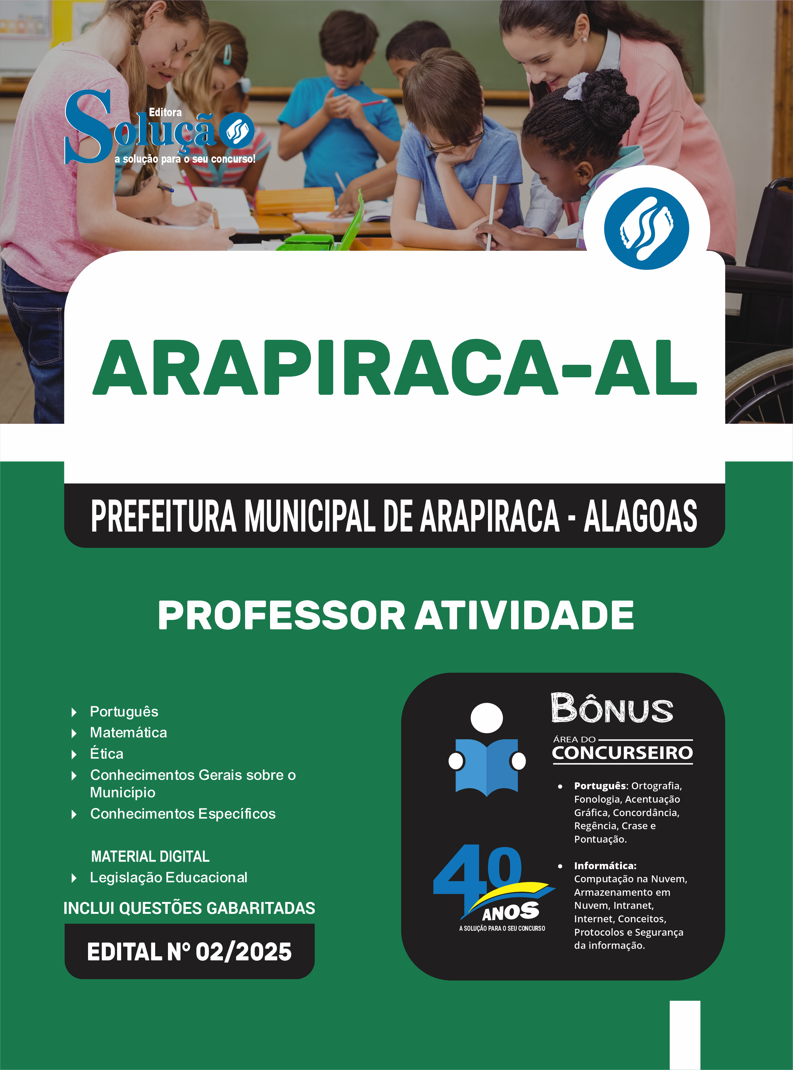 Apostila Prefeitura de Arapiraca - AL em PDF 2025 - Professor Atividade - Educação Infantil e Anos Iniciais