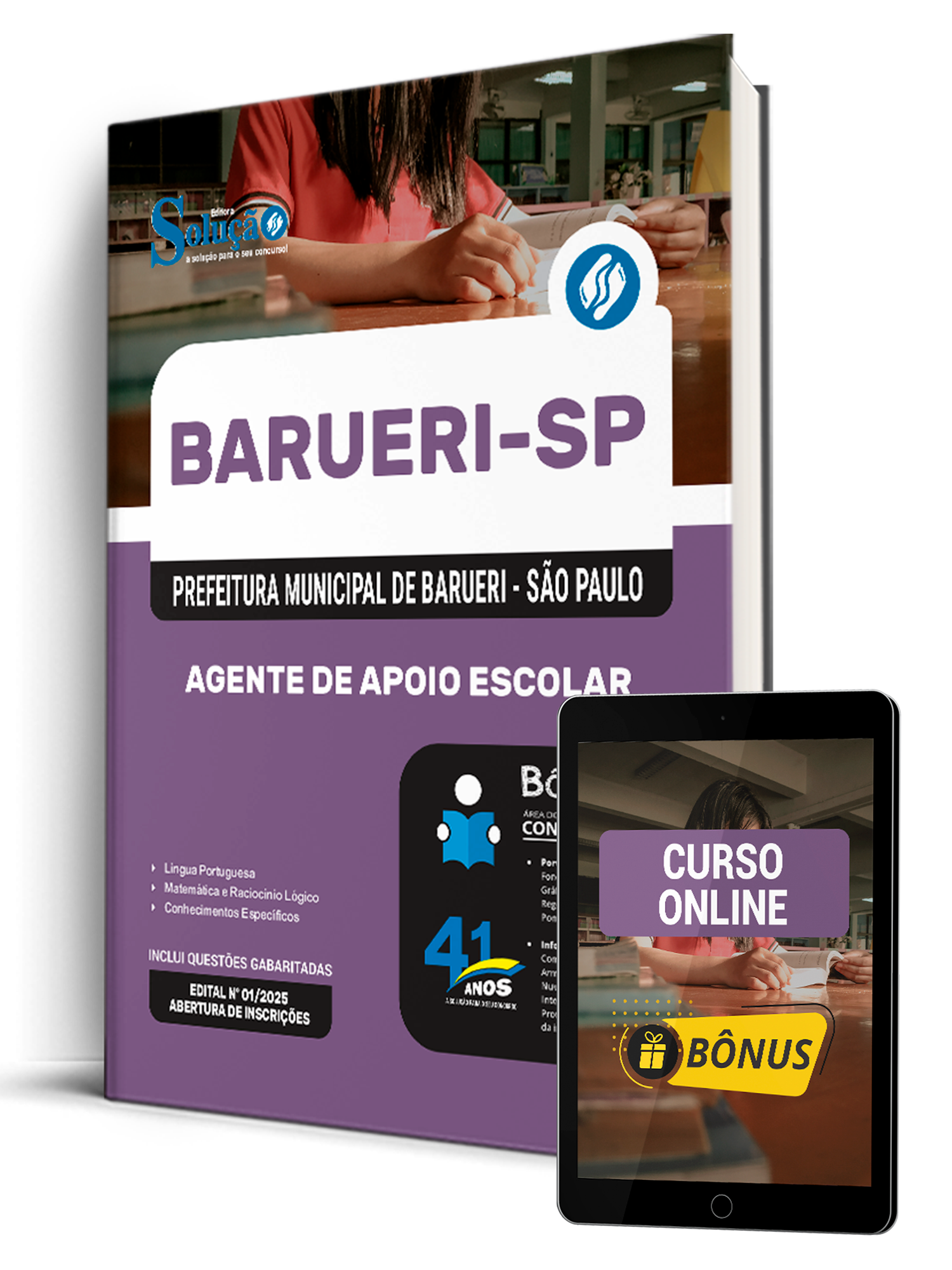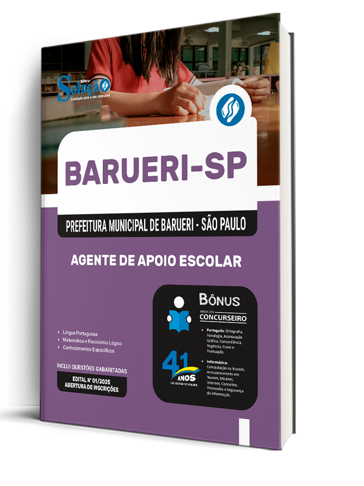 A Apostila Prefeitura Municipal de Barueri - SP 2025 - Agente de Apoio Escolar foi organizada para proporcionar um melhor rendimento na sua preparação, abordando cada conteúdo de forma objetiva e direcionada. Estude para o Concurso da Prefeitura Municipal de Barueri - SP 2025 com um material de acordo com o Edital oficial para o cargo de Agente de Apoio Escolar.