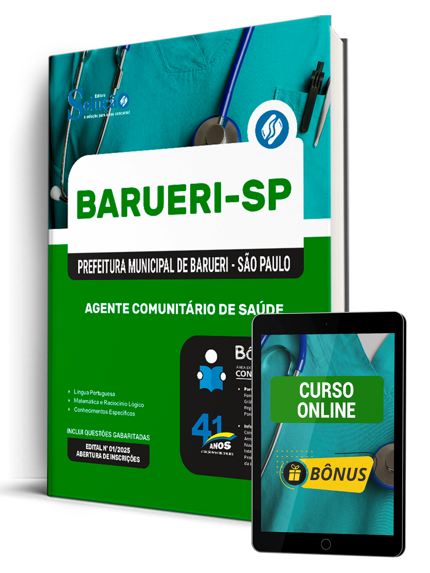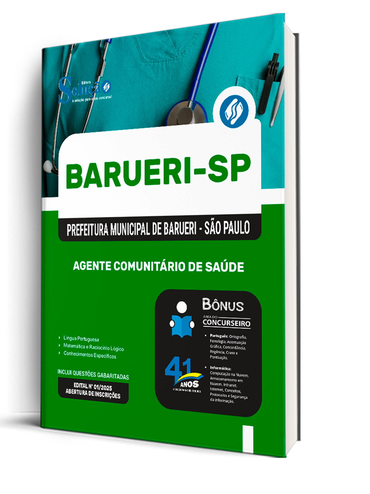 A Apostila Prefeitura Municipal de Barueri - SP 2025 - Agente Comunitário de Saúde foi organizada para proporcionar um melhor rendimento na sua preparação, abordando cada conteúdo de forma objetiva e direcionada. Estude para o Concurso da Prefeitura Municipal de Barueri - SP 2025 com um material de acordo com o Edital oficial para o cargo de Agente Comunitário de Saúde.