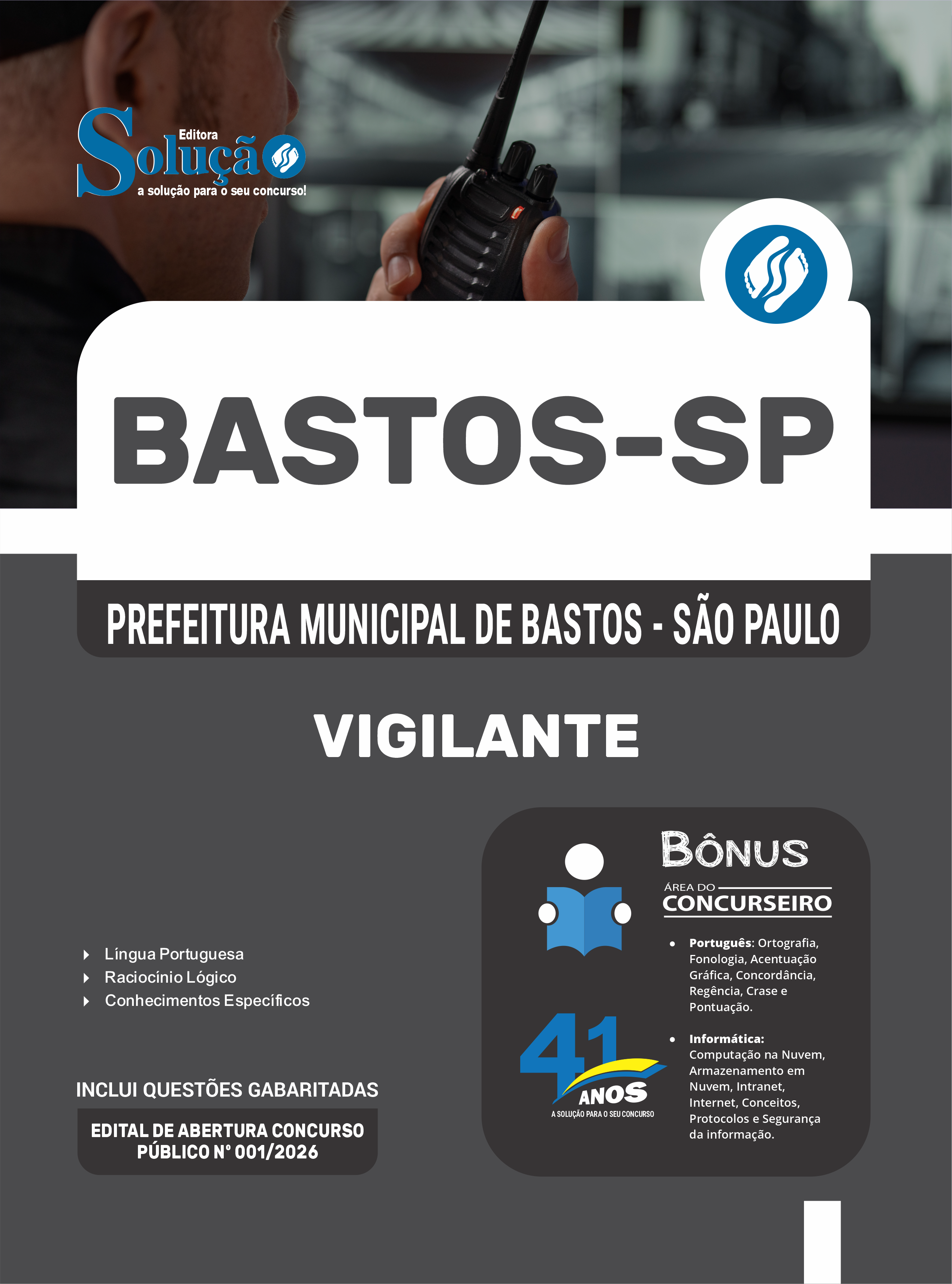 A Apostila Prefeitura Municipal de Bastos - SP 2026 - Vigilante foi organizada para proporcionar um melhor rendimento na sua preparação, abordando cada conteúdo de forma objetiva e direcionada. Estude para o Concurso da Prefeitura Municipal de Bastos - SP 2026 com um material de acordo com o Edital oficial para o cargo de Vigilante.