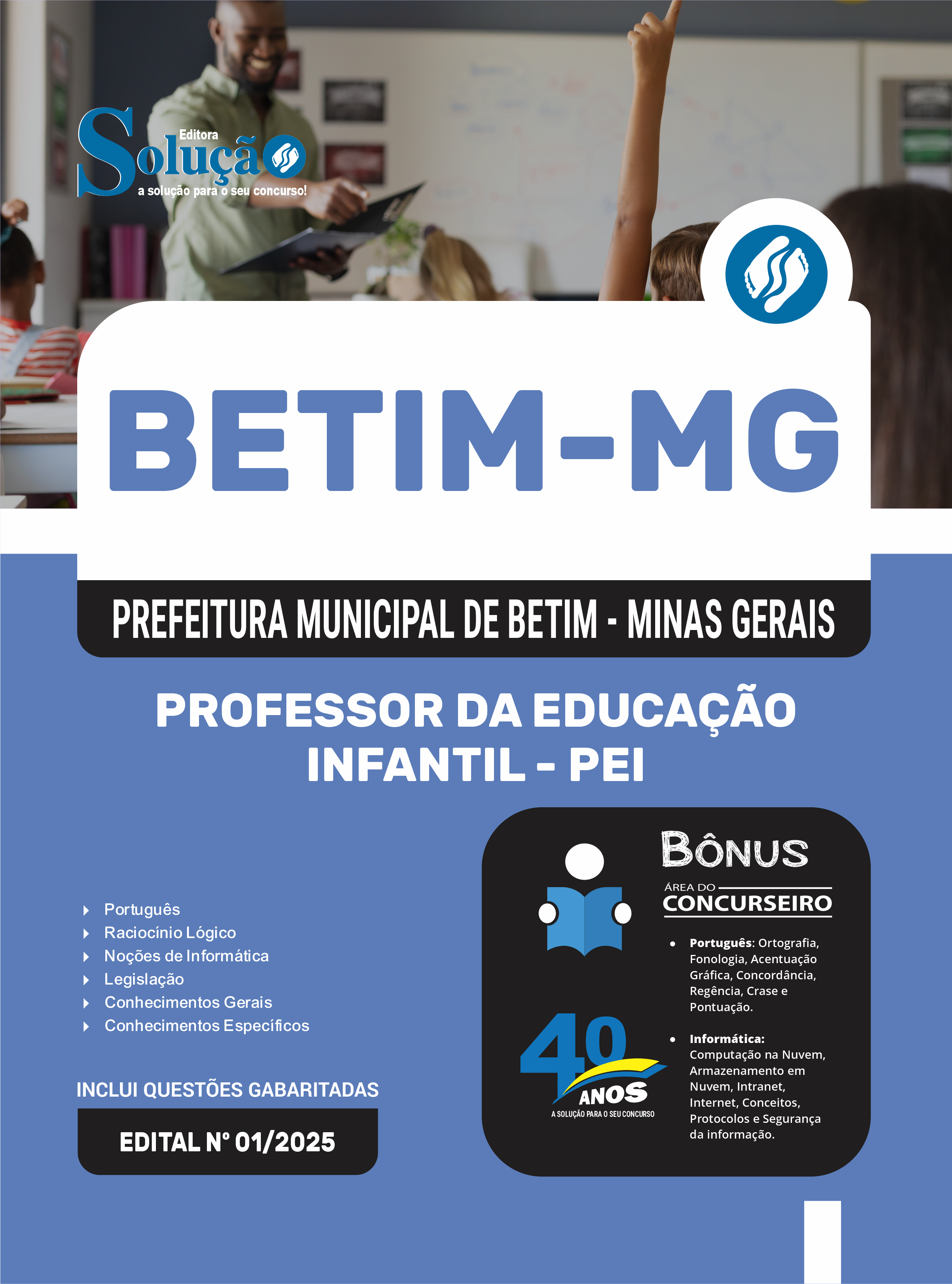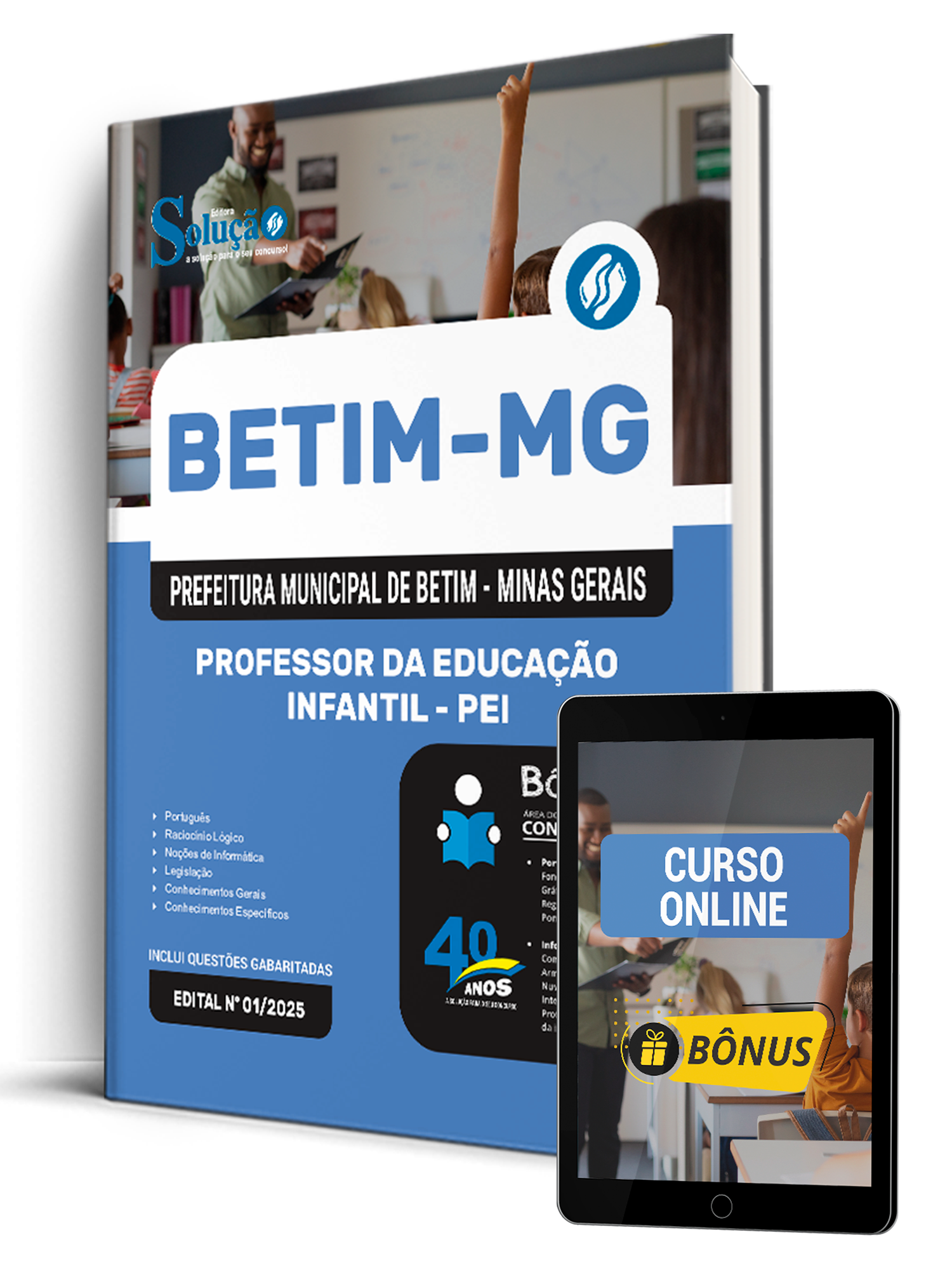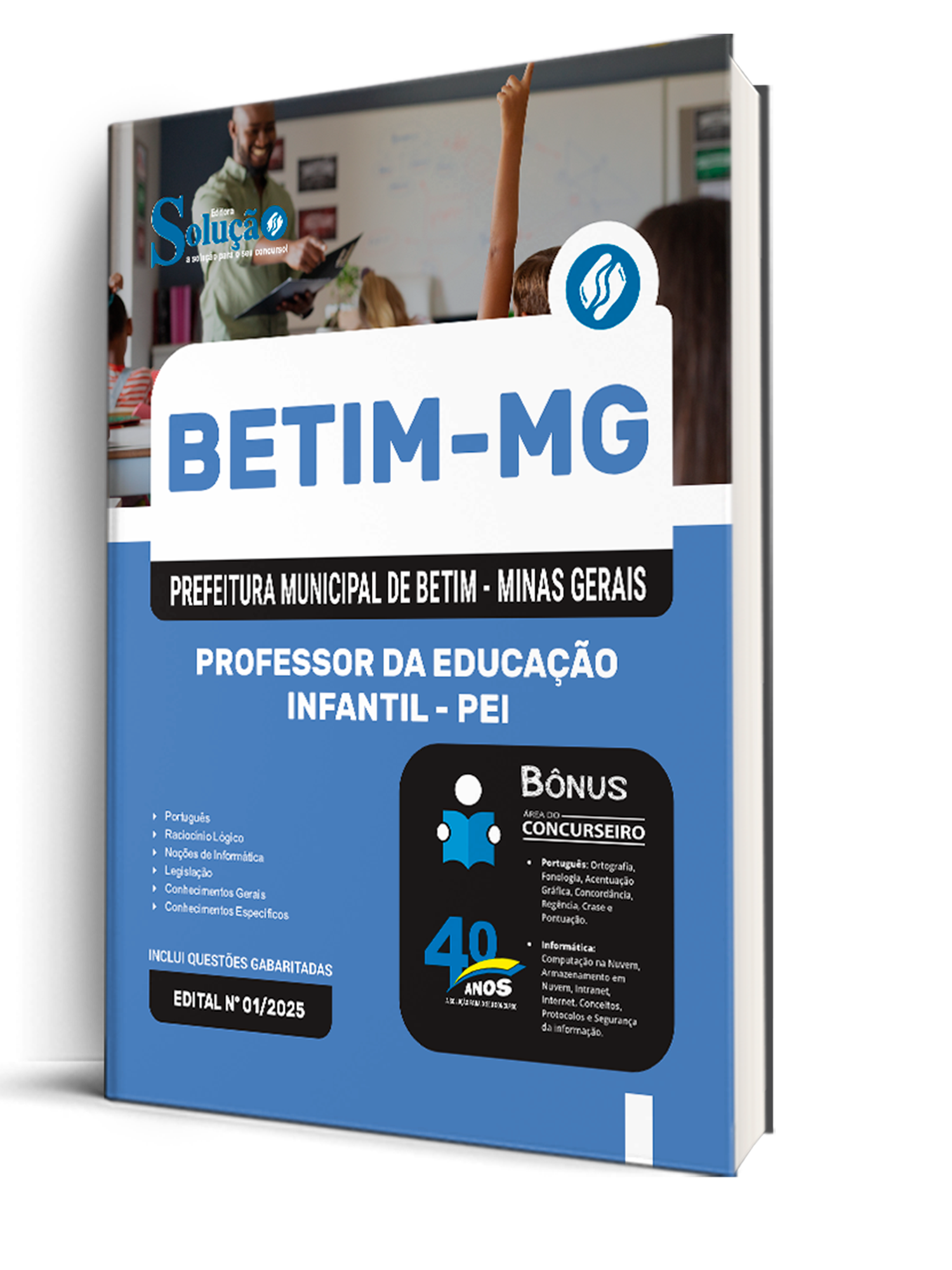 A Apostila Prefeitura Municipal de Betim - MG 2025 - Professor da Educação Infantil - PEI foi organizada para proporcionar um melhor rendimento na sua preparação, abordando cada conteúdo de forma objetiva e direcionada. Estude para o Concurso da Prefeitura Municipal de Betim - MG 2025 com um material de acordo com o Edital oficial para o cargo de Professor da Educação Infantil - PEI.