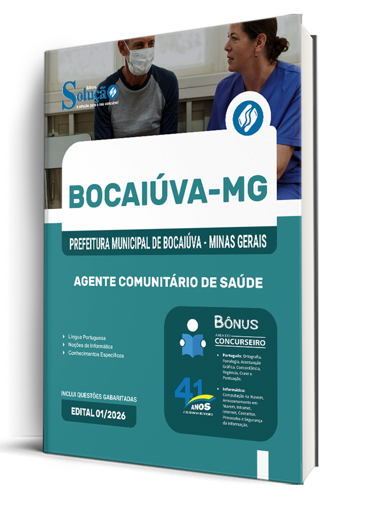A Apostila Prefeitura Municipal de Bocaiúva-MG 2026 - Agente Comunitário de Saúde foi organizada para proporcionar um melhor rendimento na sua preparação, abordando cada conteúdo de forma objetiva e direcionada. Estude para o Concurso da Prefeitura Municipal de Bocaiúva-MG 2026 com um material de acordo com o Edital oficial para o cargo de Agente Comunitário de Saúde.