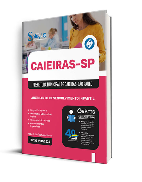 A Apostila Prefeitura de Caieiras - SP 2024 - Auxiliar de Desenvolvimento Infantil foi organizada para proporcionar um melhor rendimento na sua preparação, abordando cada conteúdo de forma objetiva e direcionada. Estude para o Concurso da Prefeitura de Caieiras - SP 2024 com um material de acordo com o Edital oficial para o cargo de Auxiliar de Desenvolvimento Infantil.