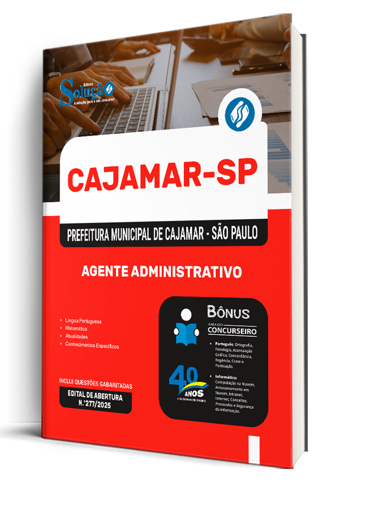 A Apostila Prefeitura Municipal de Cajamar - SP 2025 - Agente Administrativo foi organizada para proporcionar um melhor rendimento na sua preparação, abordando cada conteúdo de forma objetiva e direcionada. Estude para o Concurso da Prefeitura Municipal de Cajamar - SP 2025 com um material de acordo com o Edital oficial para o cargo de Agente Administrativo.