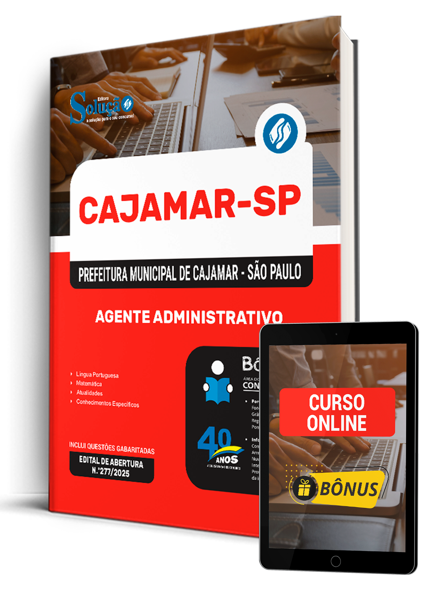 A Apostila Prefeitura Municipal de Cajamar - SP 2025 - Agente Administrativo foi organizada para proporcionar um melhor rendimento na sua preparação, abordando cada conteúdo de forma objetiva e direcionada. Estude para o Concurso da Prefeitura Municipal de Cajamar - SP 2025 com um material de acordo com o Edital oficial para o cargo de Agente Administrativo.