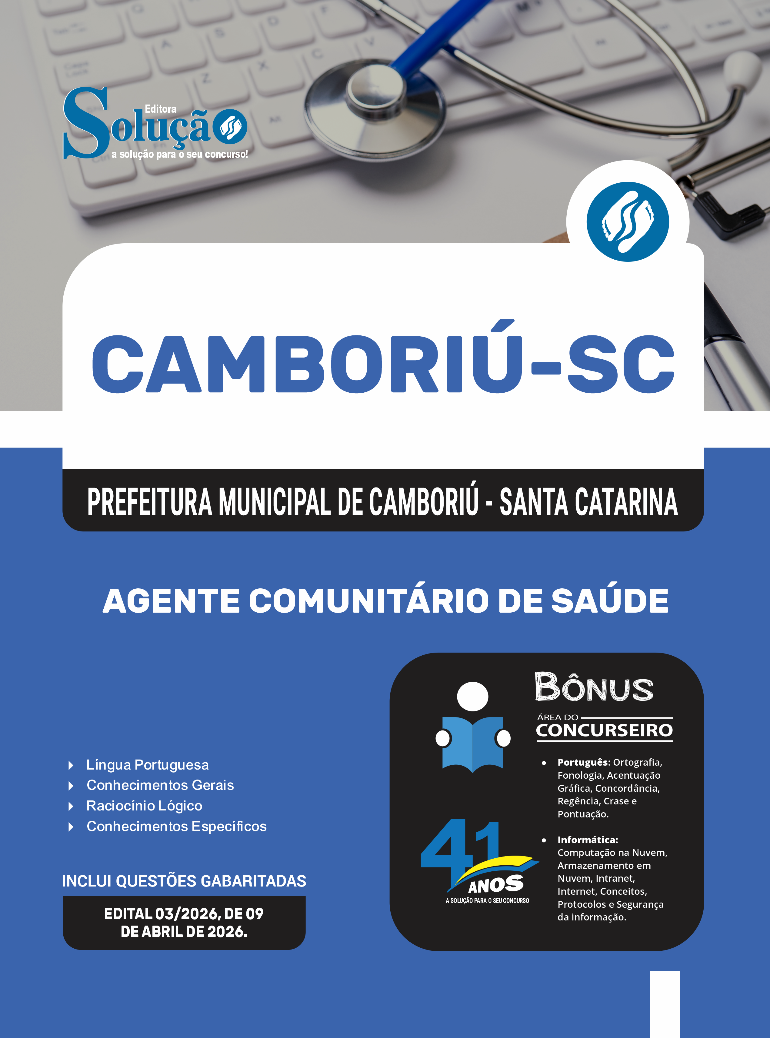 A Apostila Prefeitura Municipal de Camboriú - SC 2026 - Agente Comunitário de Saúde foi organizada para proporcionar um melhor rendimento na sua preparação, abordando cada conteúdo de forma objetiva e direcionada. Estude para o Concurso da Prefeitura Municipal de Camboriú - SC 2026 com um material de acordo com o Edital oficial para o cargo de Agente Comunitário de Saúde.